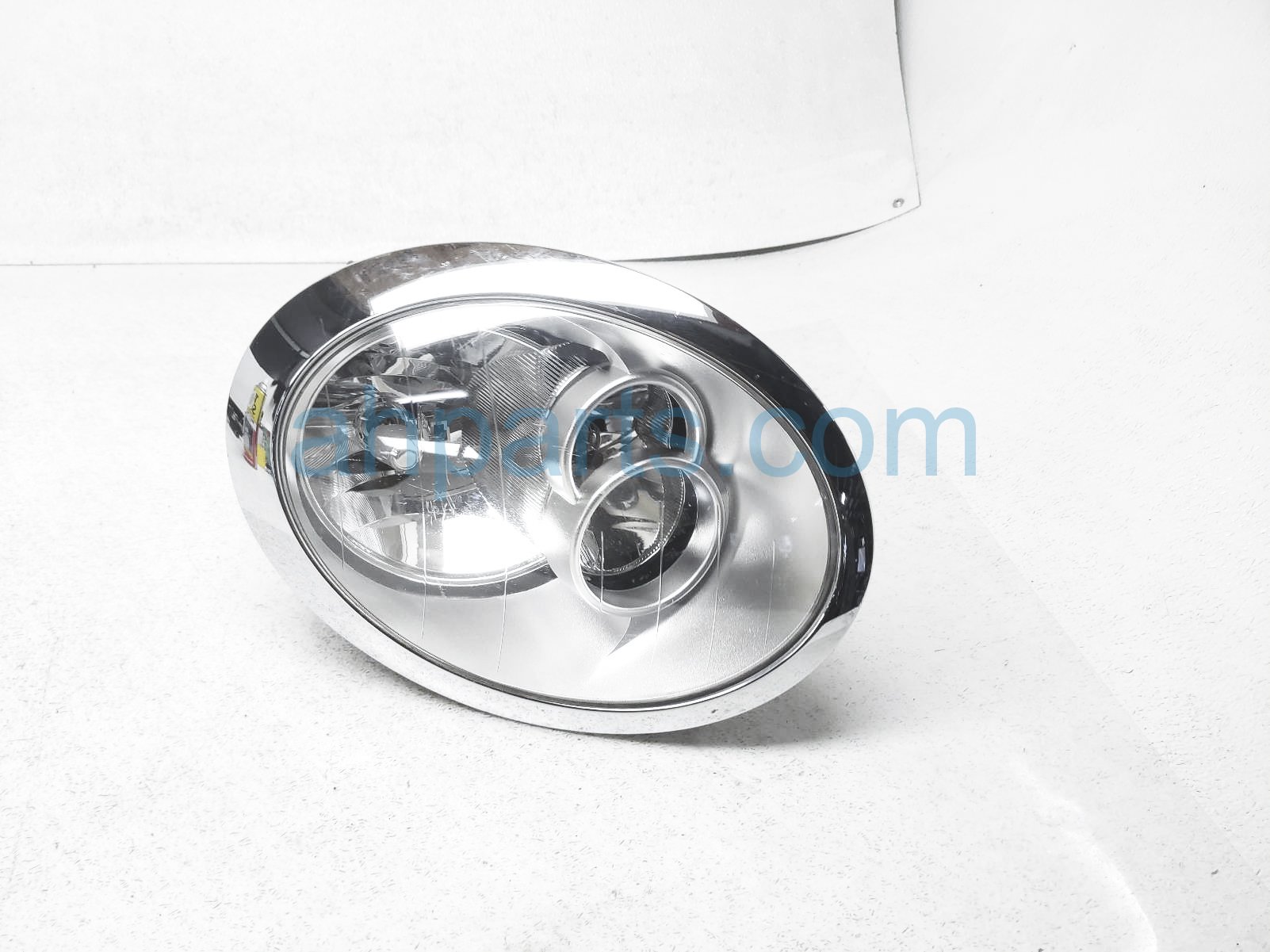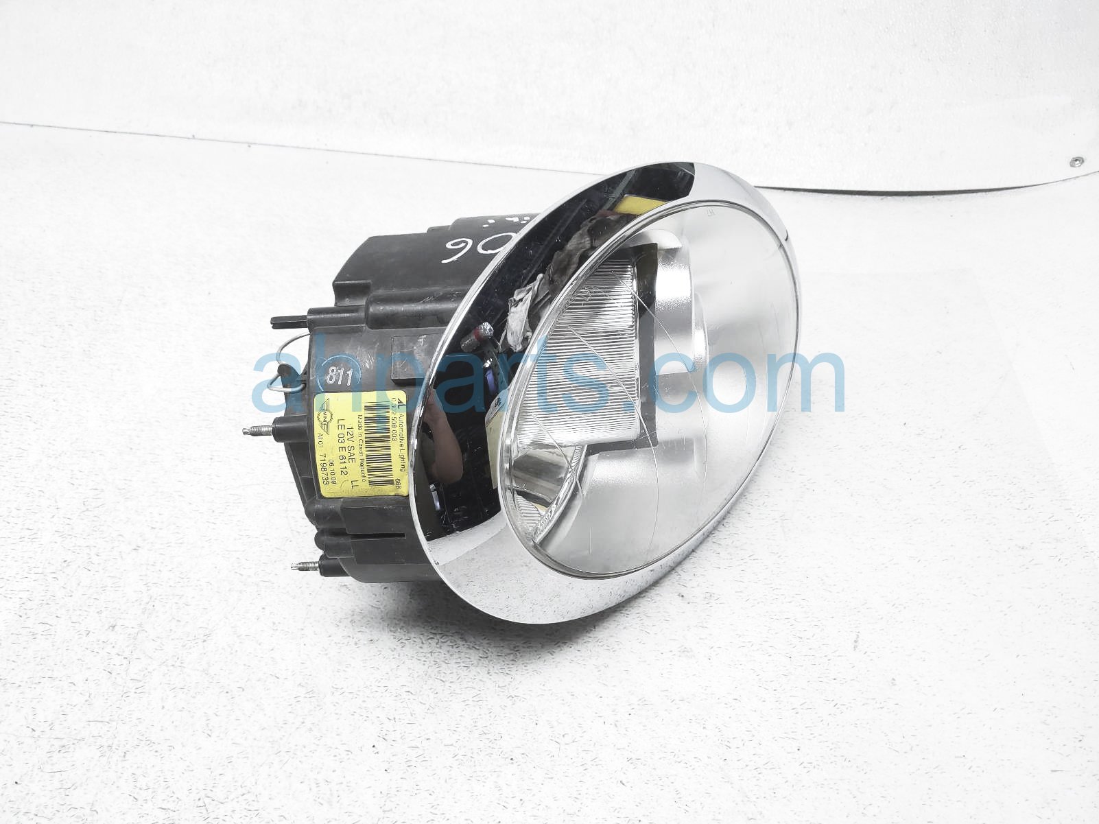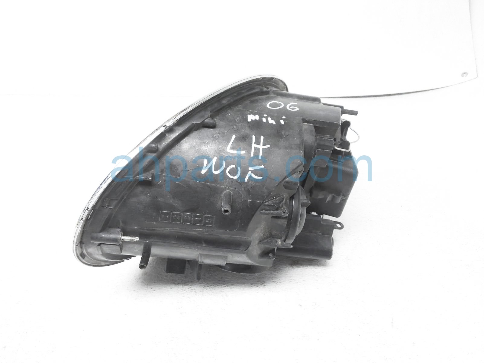2006 BMW Mini Cooper headlight / left driver headlamp light is a used item with a 1 year warranty. This OEM replacement headlight / left driver headlamp light is genuine and has part numbers 63-12-7-198-733, and 63127198733. This BMW part sells for $69. This item has the following note: 'Has scratches on lens.'