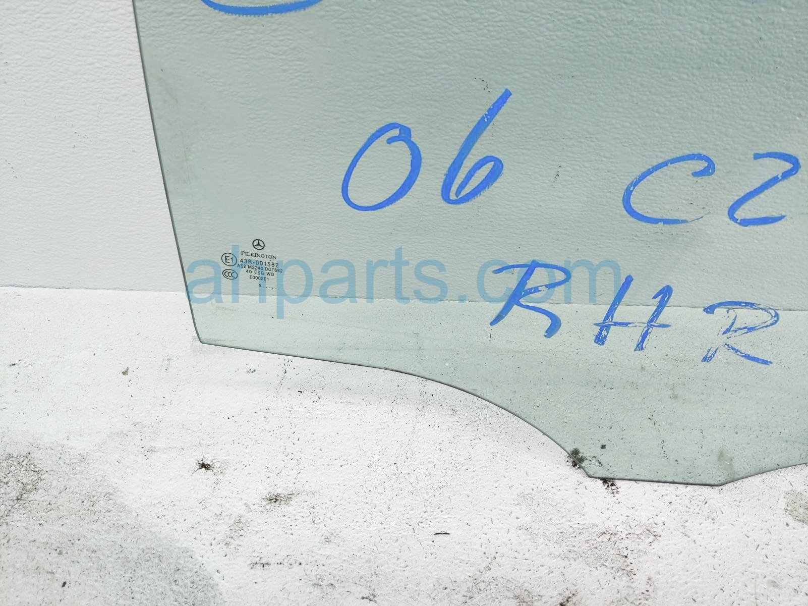 2006 Mercedes C280 rear window rear passenger door glass is a used item with a 1 year warranty. This OEM replacement rear window rear passenger door glass is genuine and has part numbers 203-735-20-10, and 2037352010. This Mercedes part sells for $50.