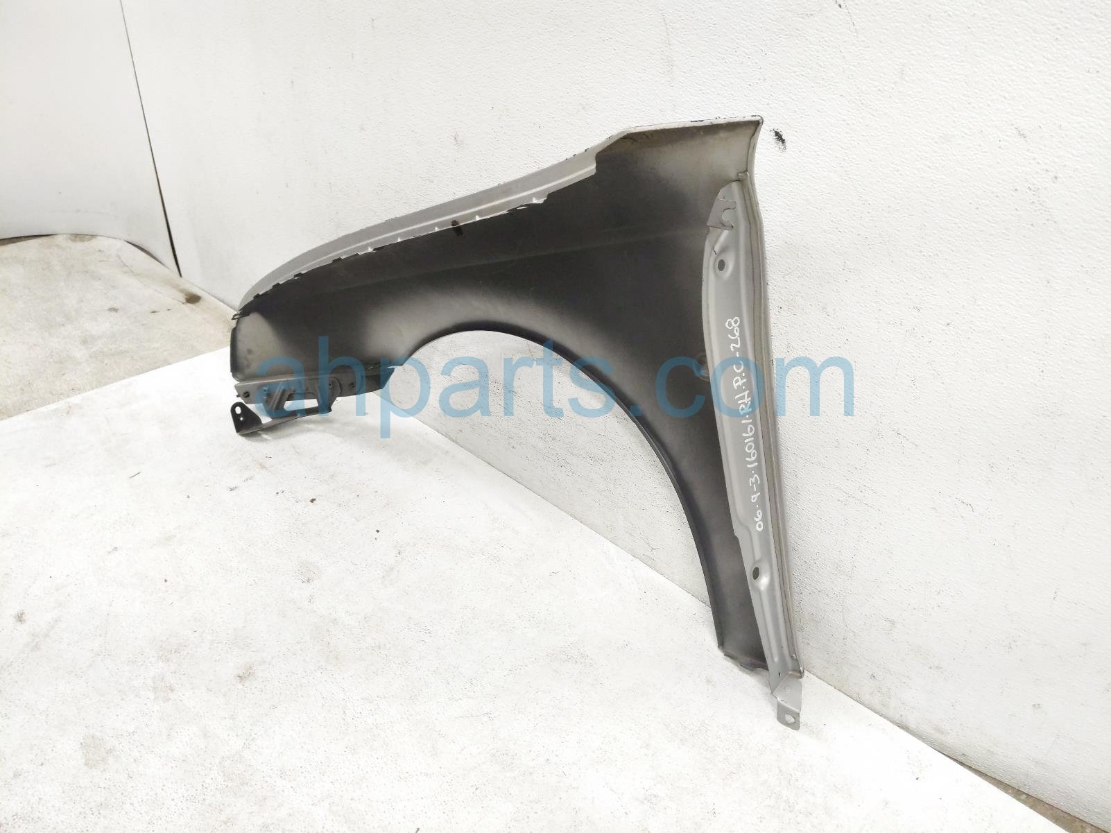 2006 Saab 9-3 front passenger fender - silver is a used item with a 1 year warranty. This OEM replacement front passenger fender - silver is genuine and has part numbers 12797541. This Saab part sells for $75. This item has the following note: 'This item has some scuffs, paint flaking, and chemical stain.'