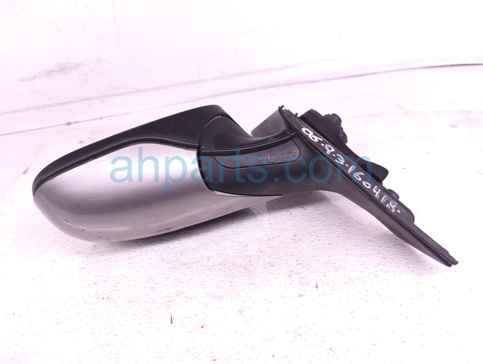 2006 Saab 9-3 rear driver side view mirror - gray - is a used item with a 1 year warranty. This OEM replacement rear driver side view mirror - gray - is genuine and has part numbers 12795606, 12797722, and 32101179. This Saab part sells for $60. This item has the following note: 'Has some scuffs/scratches - grade a.'
