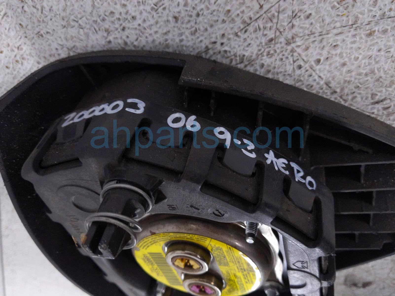 2006 Saab 9-3 steering wheel airbag is a used item with a 1 year warranty. This OEM replacement steering wheel airbag is genuine and has part numbers 39095647. This Saab part sells for $95. This item has the following note: 'This item has some scuffs and scratches.'
