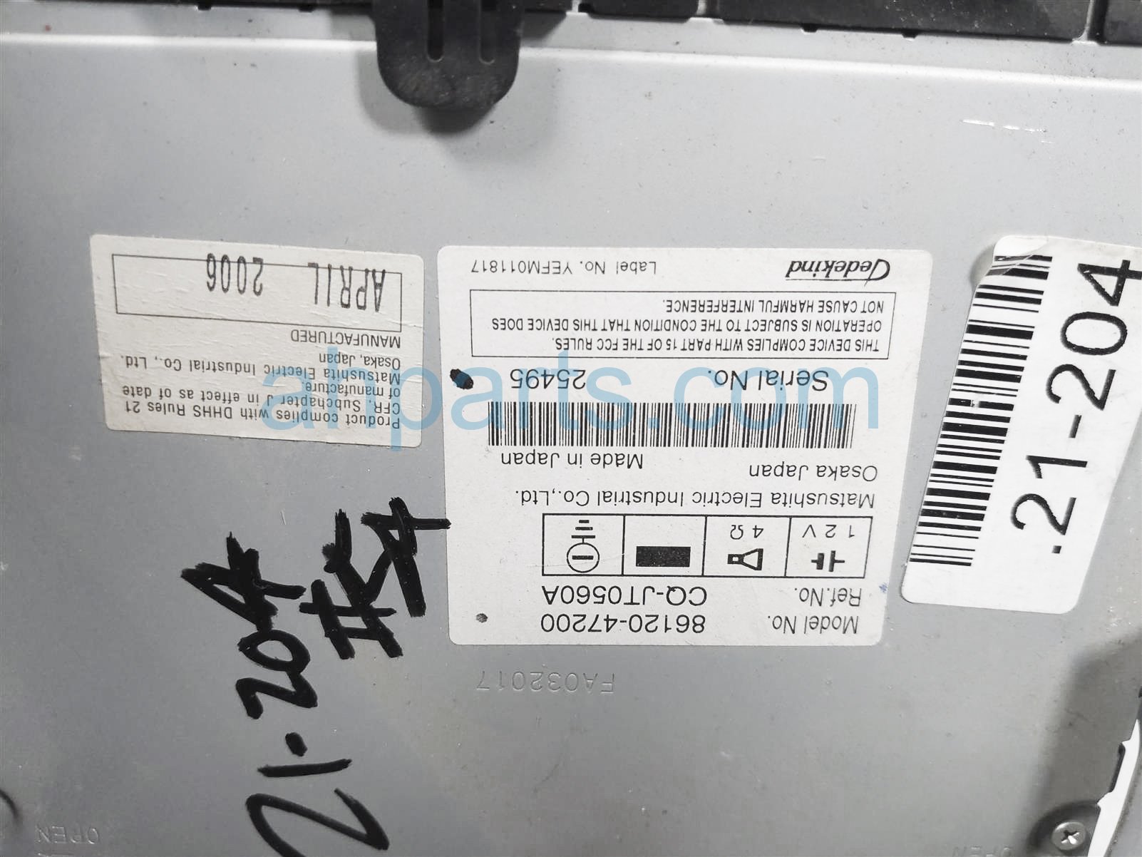 2006 Toyota Prius am/fm/6 disc cd & radio is a used item with a 1 year warranty. This OEM replacement am/fm/6 disc cd & radio is genuine and has part numbers 86120-47200, and 8612047200. This Toyota part sells for $49. This item has the following note: 'Has minor scratches.'