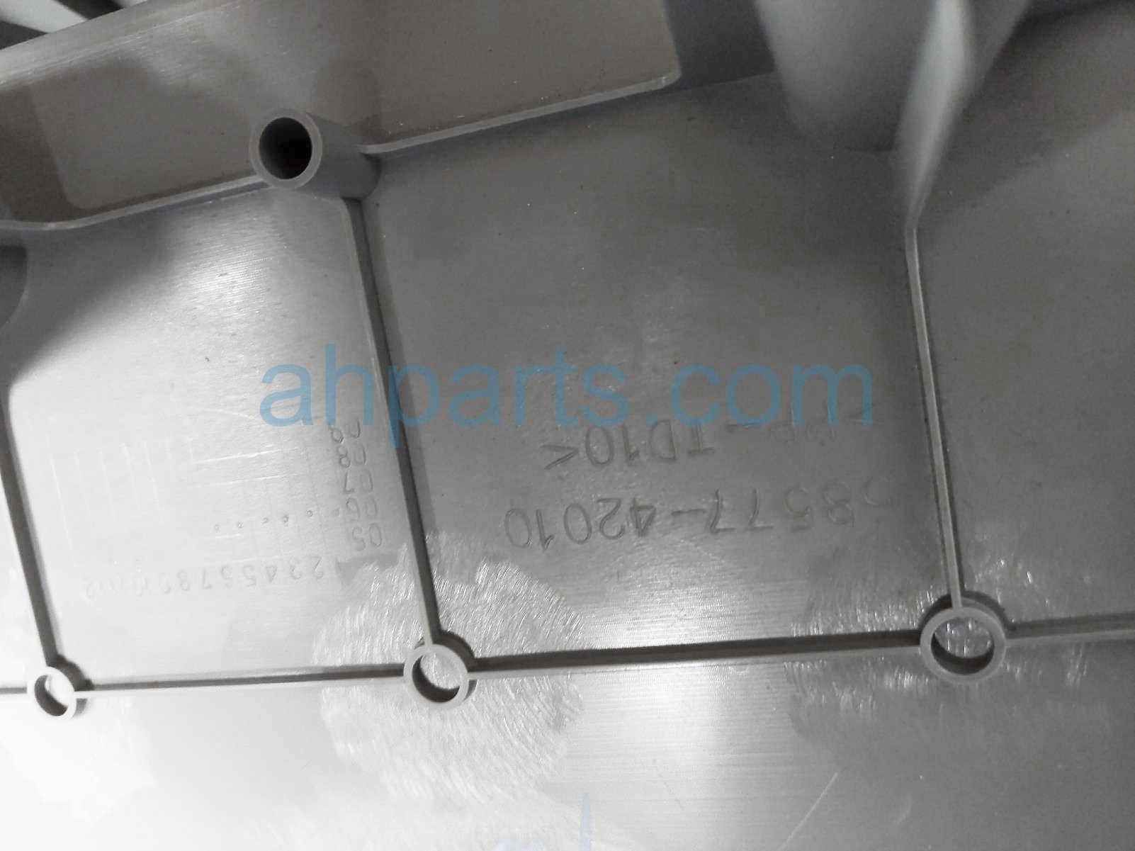 2006 Toyota RAV 4 rear cargo floor mat plate is a used item with a 1 year warranty. This OEM replacement rear cargo floor mat plate is genuine and has part numbers 58577-42010-B1, and 5857742010B1. This Toyota part sells for $45. This item has the following note: 'Grey.'