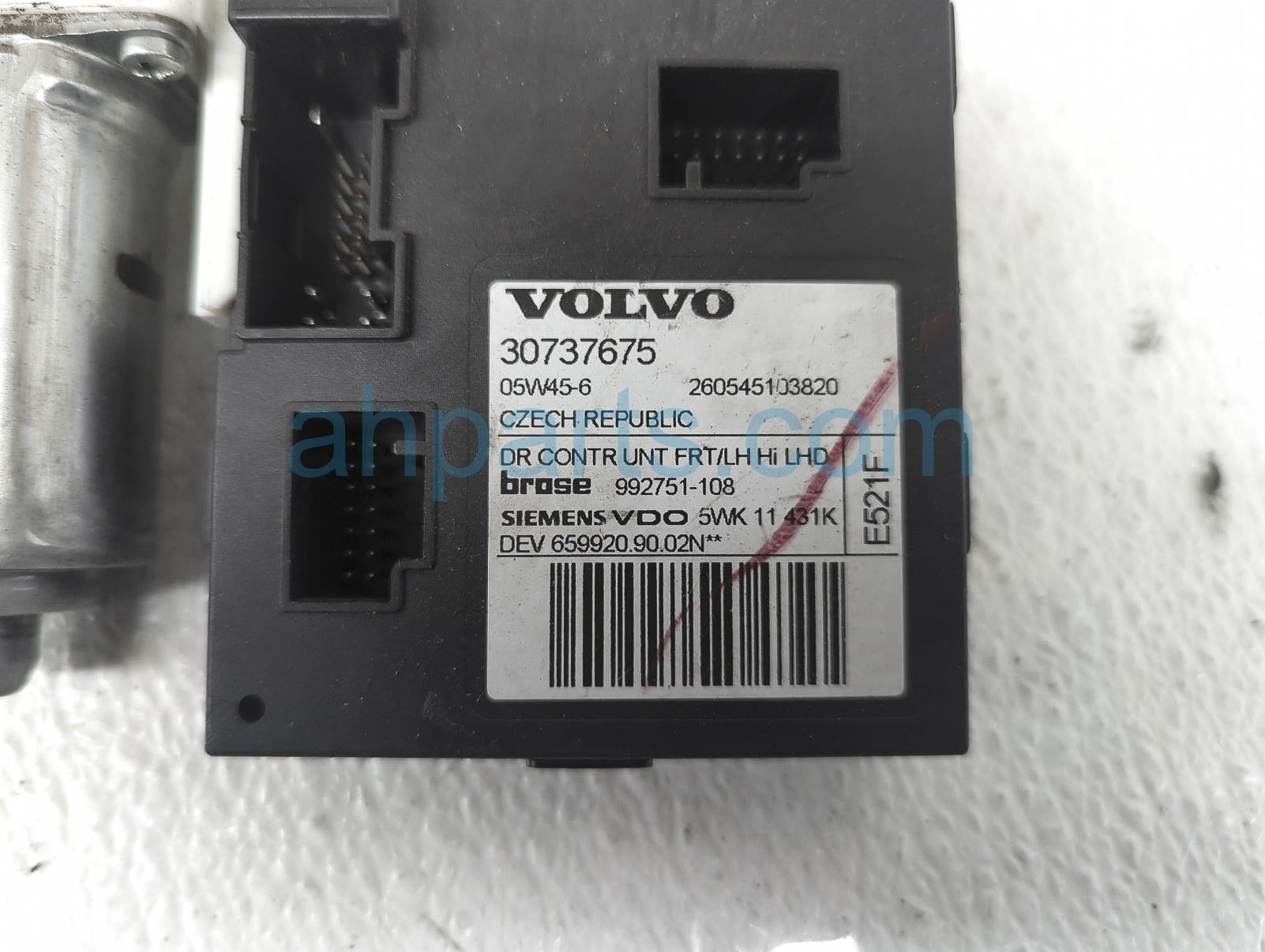 2006 Volvo S40 front driver window regulator motor only is a used item with a 1 year warranty. This OEM replacement front driver window regulator motor only is genuine and has part numbers 30737675. This Volvo part sells for $25.