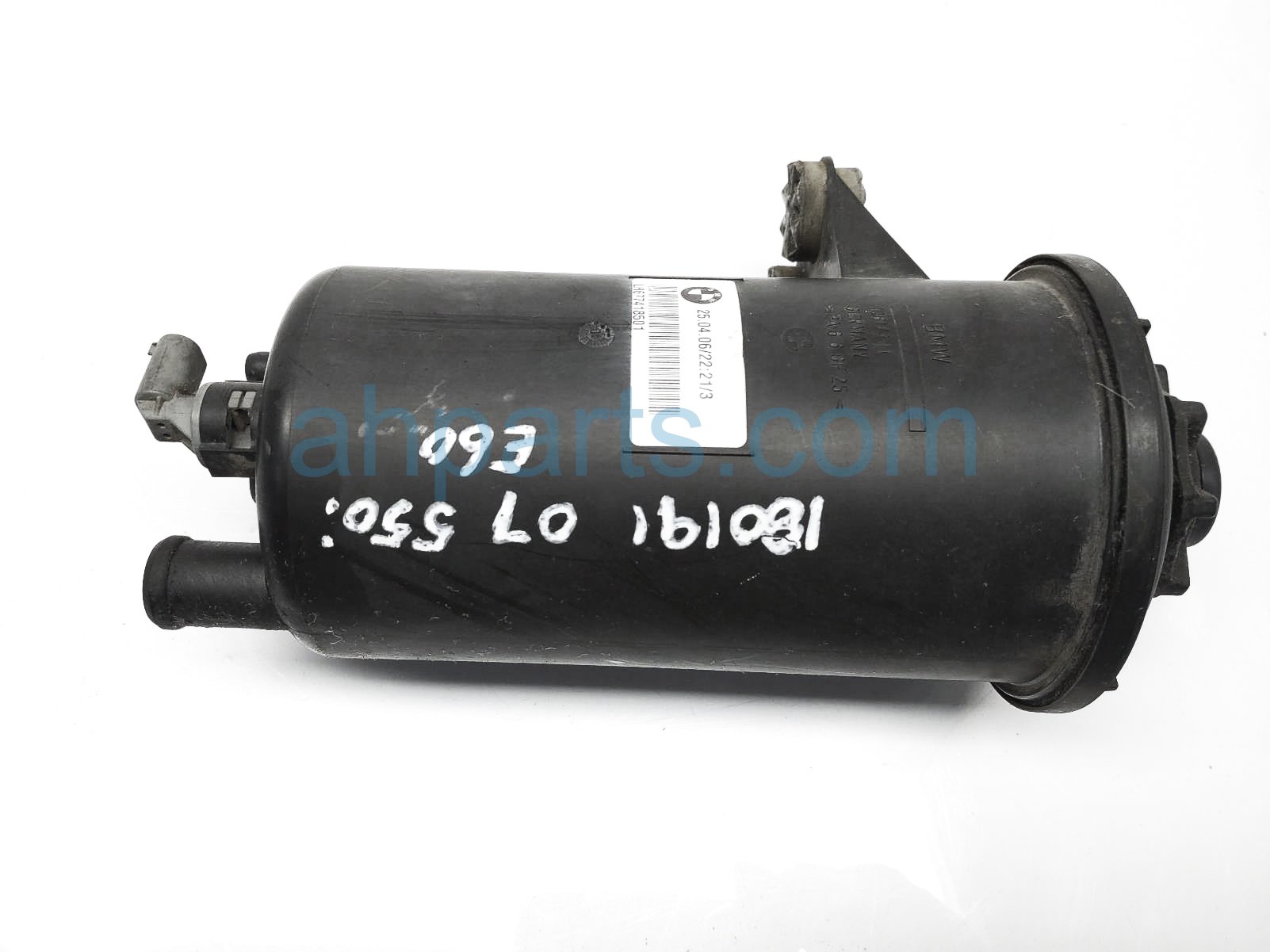 2007 BMW 550I reserve bottle / power steering resivoir tank is a used item with a 1 year warranty. This OEM replacement reserve bottle / power steering resivoir tank is genuine and has part numbers 32-41-6-782-538, and 32416782538. This BMW part sells for $24.