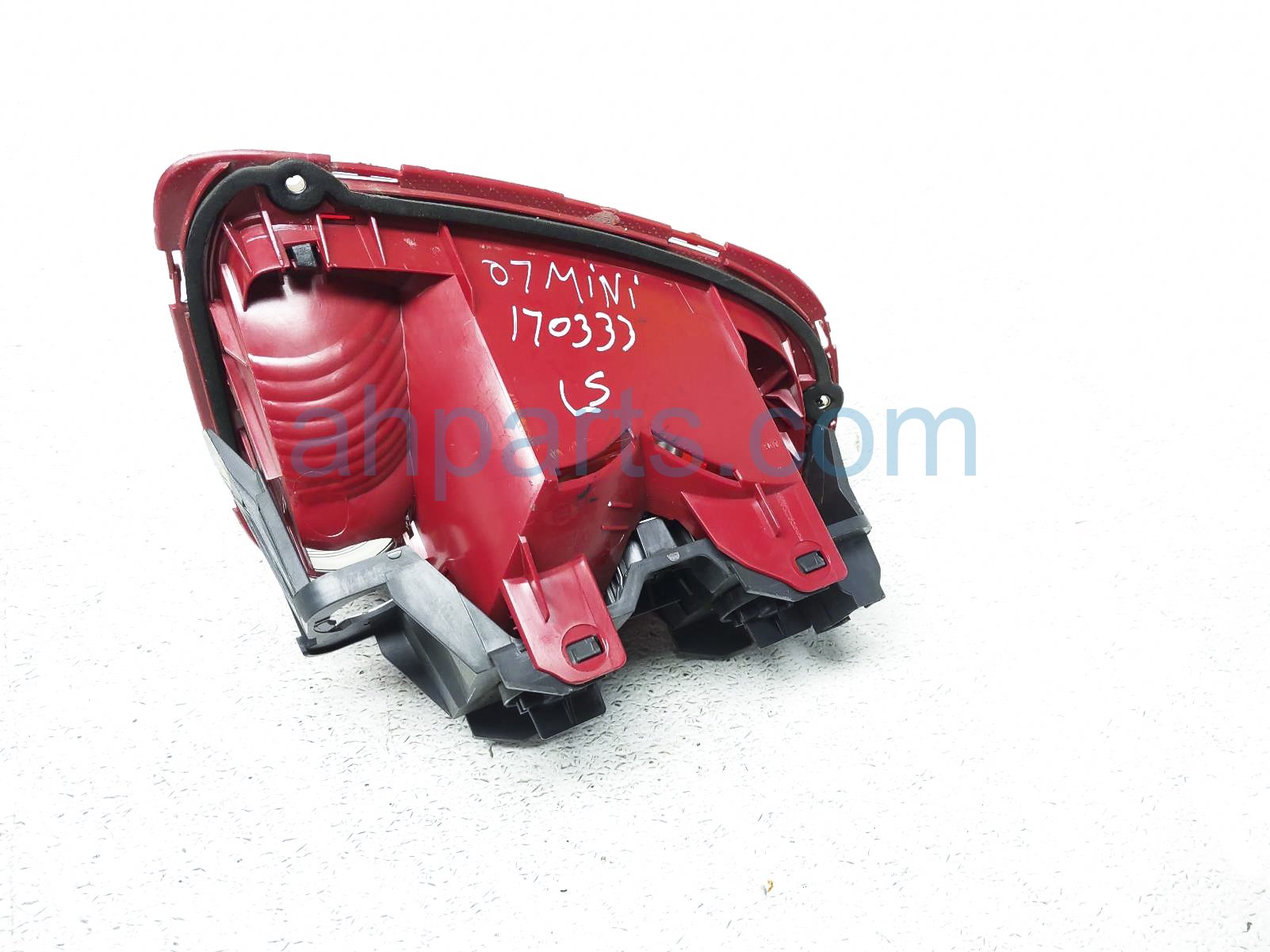 2007 BMW Mini Cooper rear driver tail lamp / light (on body)- is a used item with a 1 year warranty. This OEM replacement rear driver tail lamp / light (on body)- is genuine and has part numbers 63 21 2 751 and 307. This BMW part sells for $39. This item has the following note: 'Scratches on lens.'