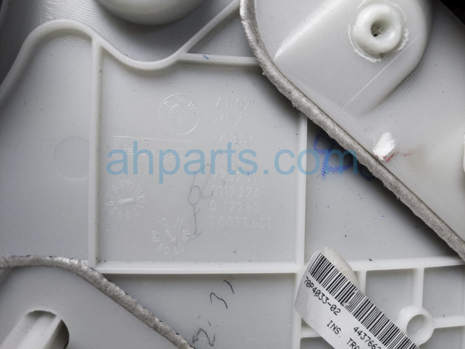 2007 BMW X5 rear liner rear driver inside door trim panel - black is a used item with a 1 year warranty. This OEM replacement rear liner rear driver inside door trim panel - black is genuine and has part numbers 51-42-7-244-447, and 51427244447. This BMW part sells for $95.