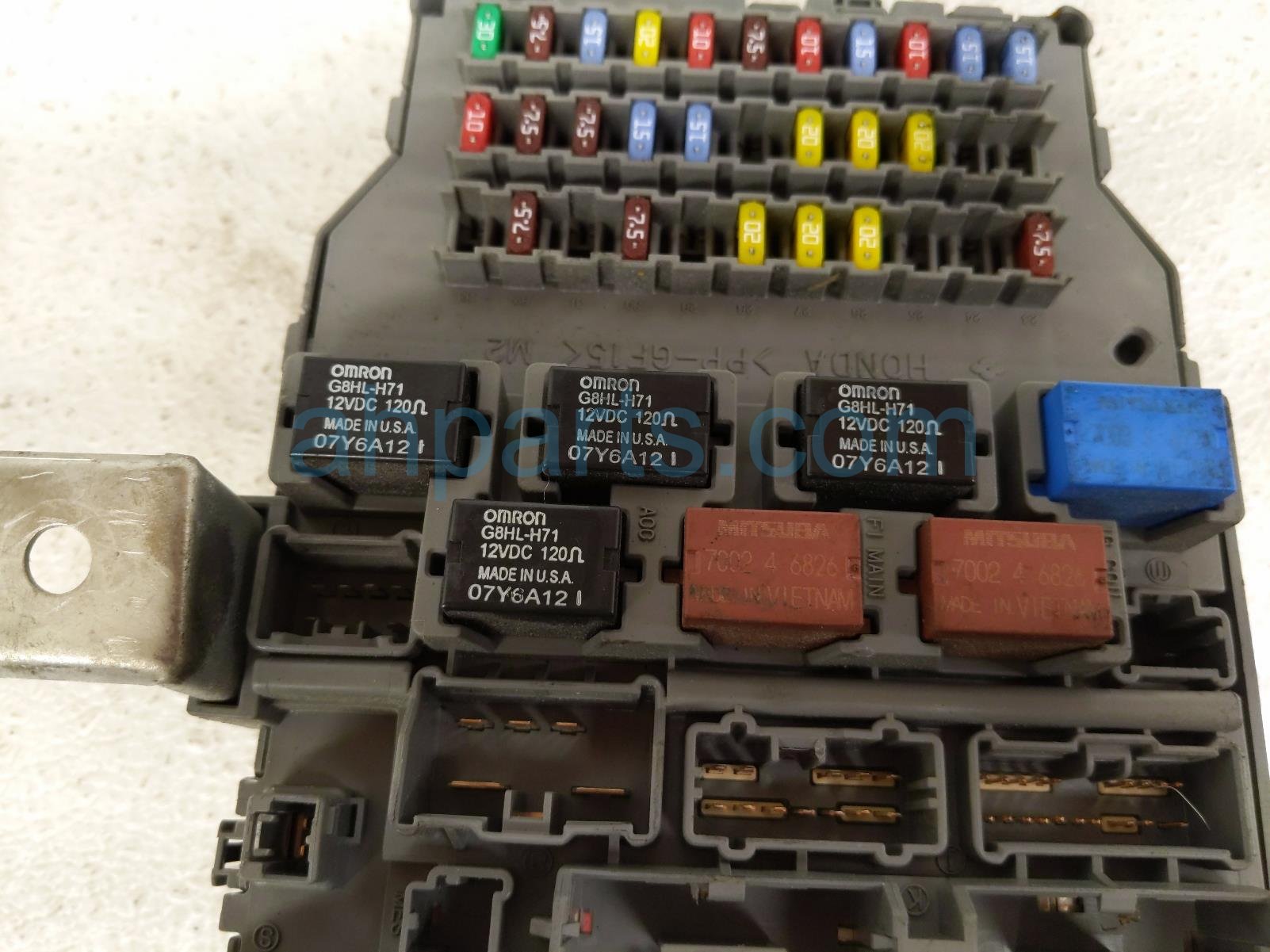 2007 Honda Accord cabin fuse box - 2.4l * is a used item with a 1 year warranty. This OEM replacement cabin fuse box - 2.4l * is genuine and has part numbers 38200-SDN-A13, and 38200SDNA13. This Honda part sells for $75. This item has the following note: 'Has a damaged reatainer clip - grade b.'