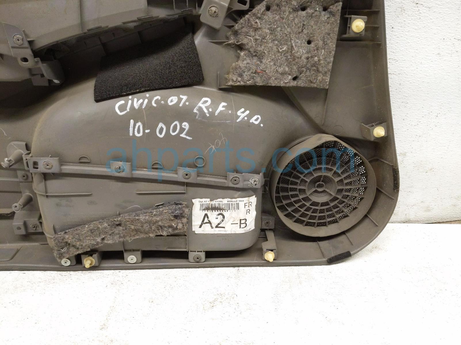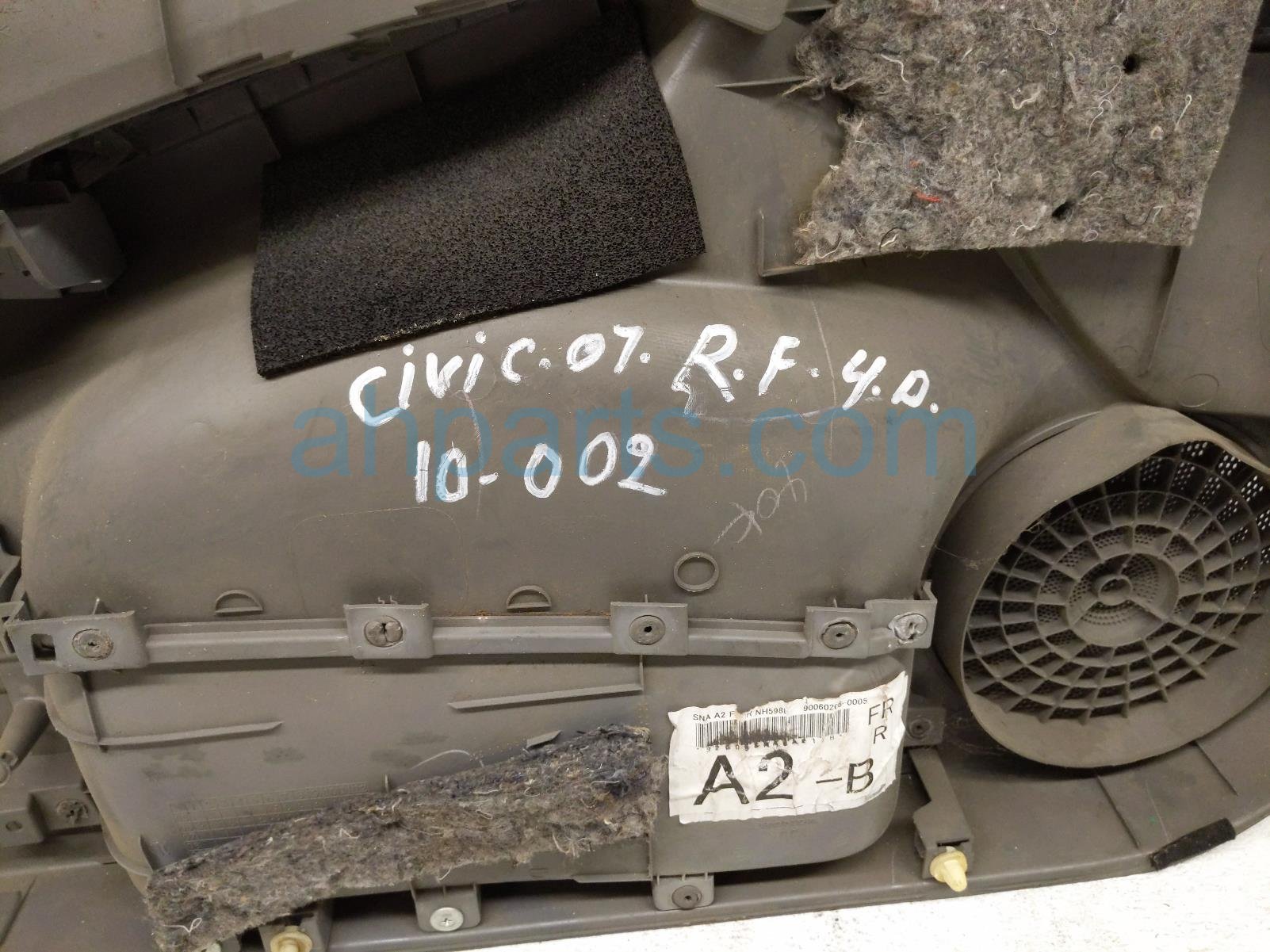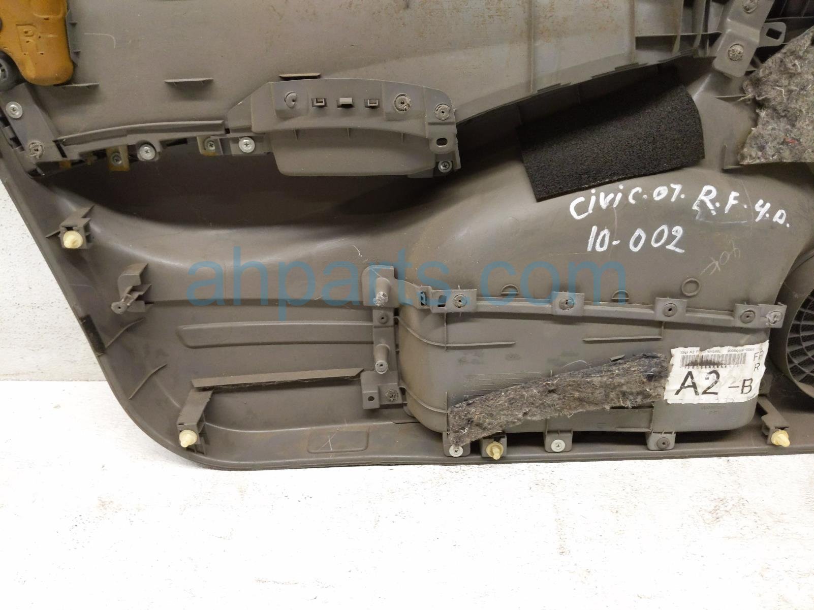 2007 Honda Civic front trim liner front passenger interior door panel - gray is a used item with a 1 year warranty. This OEM replacement front trim liner front passenger interior door panel - gray is genuine and has part numbers 83503-SNA-A23ZC, and 83503SNAA23ZC. This Honda part sells for $65.