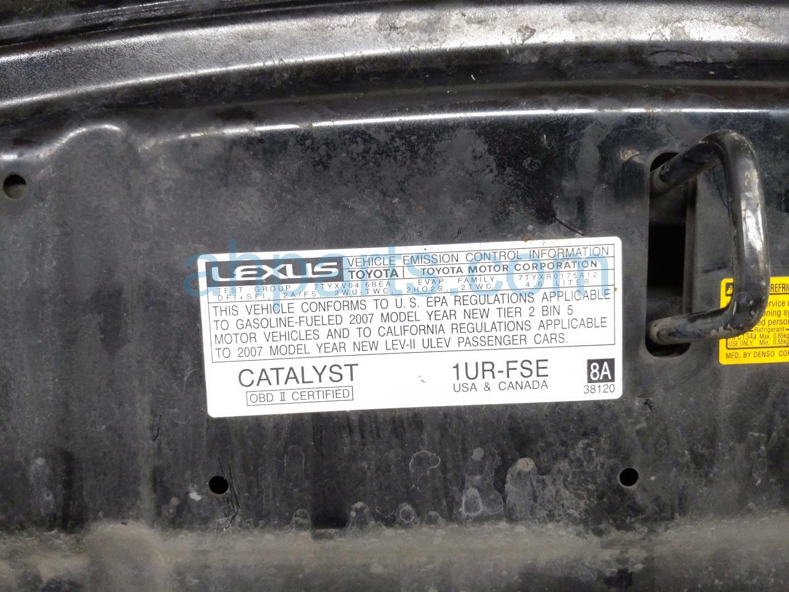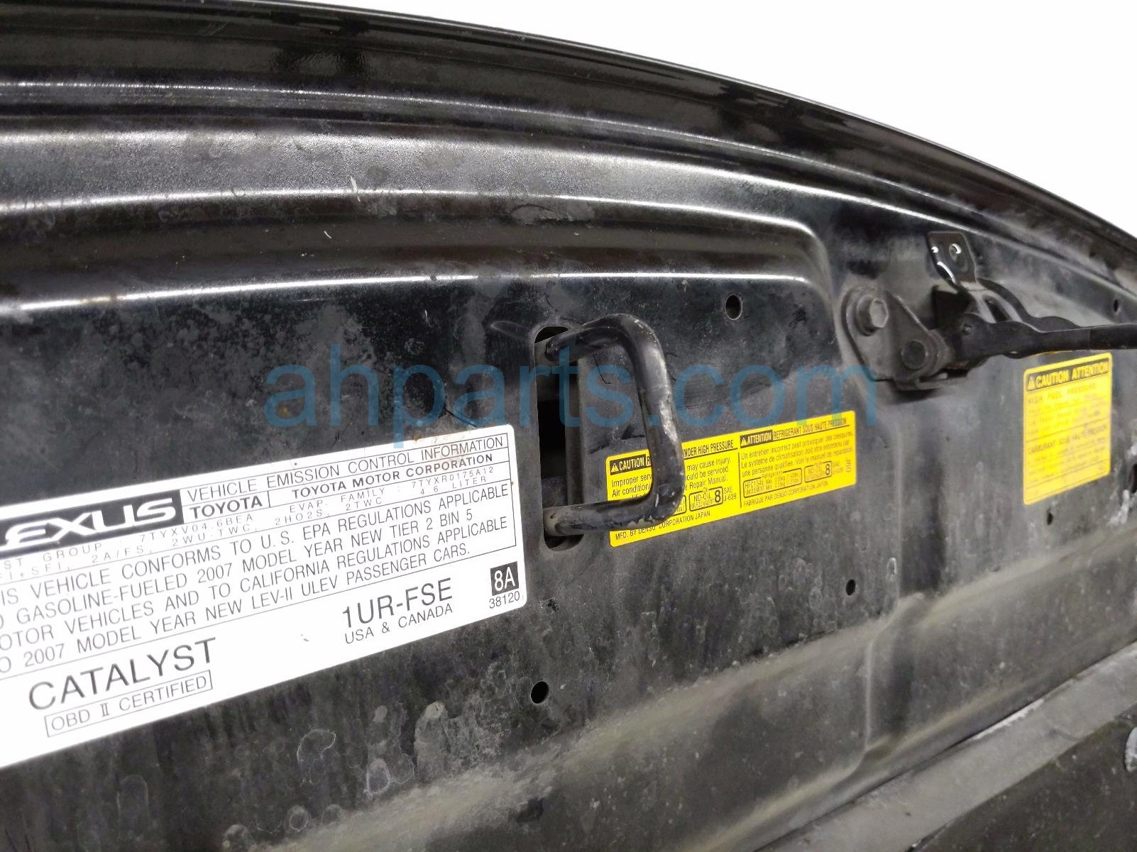 2007 Lexus LS460 hood - black - is a used item with a 1 year warranty. This OEM replacement hood - black - is genuine and has part numbers 53301-50080, and 5330150080. This Lexus part sells for $395. This item has the following note: 'This item has a dent on the front corner.'