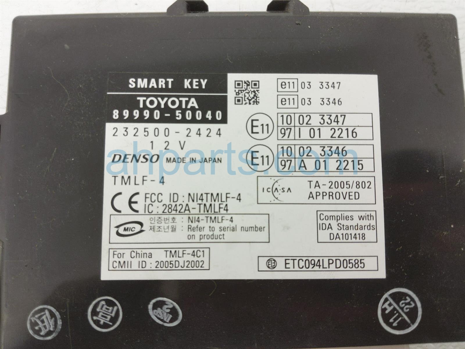 2007 Lexus LS460 smart key computer assy is a used item with a 1 year warranty. This OEM replacement smart key computer assy is genuine and has part numbers 89990-50040, and 8999050040. This Lexus part sells for $100.
