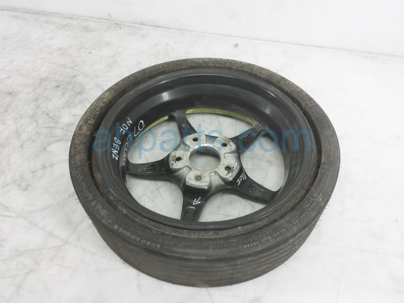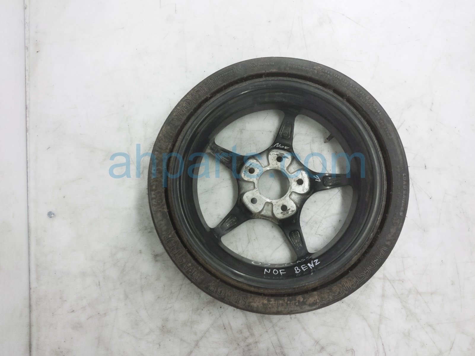 2007 Mercedes C230 wheel / rim spare tire donut is a used item with a 1 year warranty. This OEM replacement wheel / rim spare tire donut is genuine and has part numbers 2034012002. This Mercedes part sells for $85.