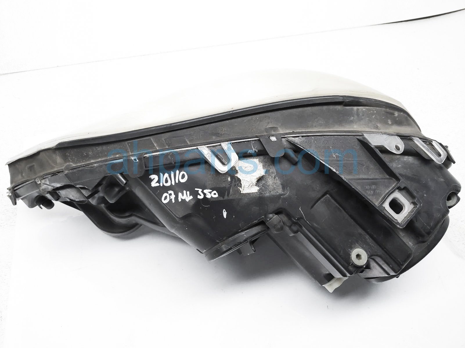 2007 Mercedes ML350 headlight passenger head lamp / light - is a used item with a 1 year warranty. This OEM replacement headlight passenger head lamp / light - is genuine and has part numbers 164-820-38-61-65, and 164820386165. This Mercedes part sells for $125. This item has the following note: 'There is a broken tab on the headlight and the lens is a little hazy.'