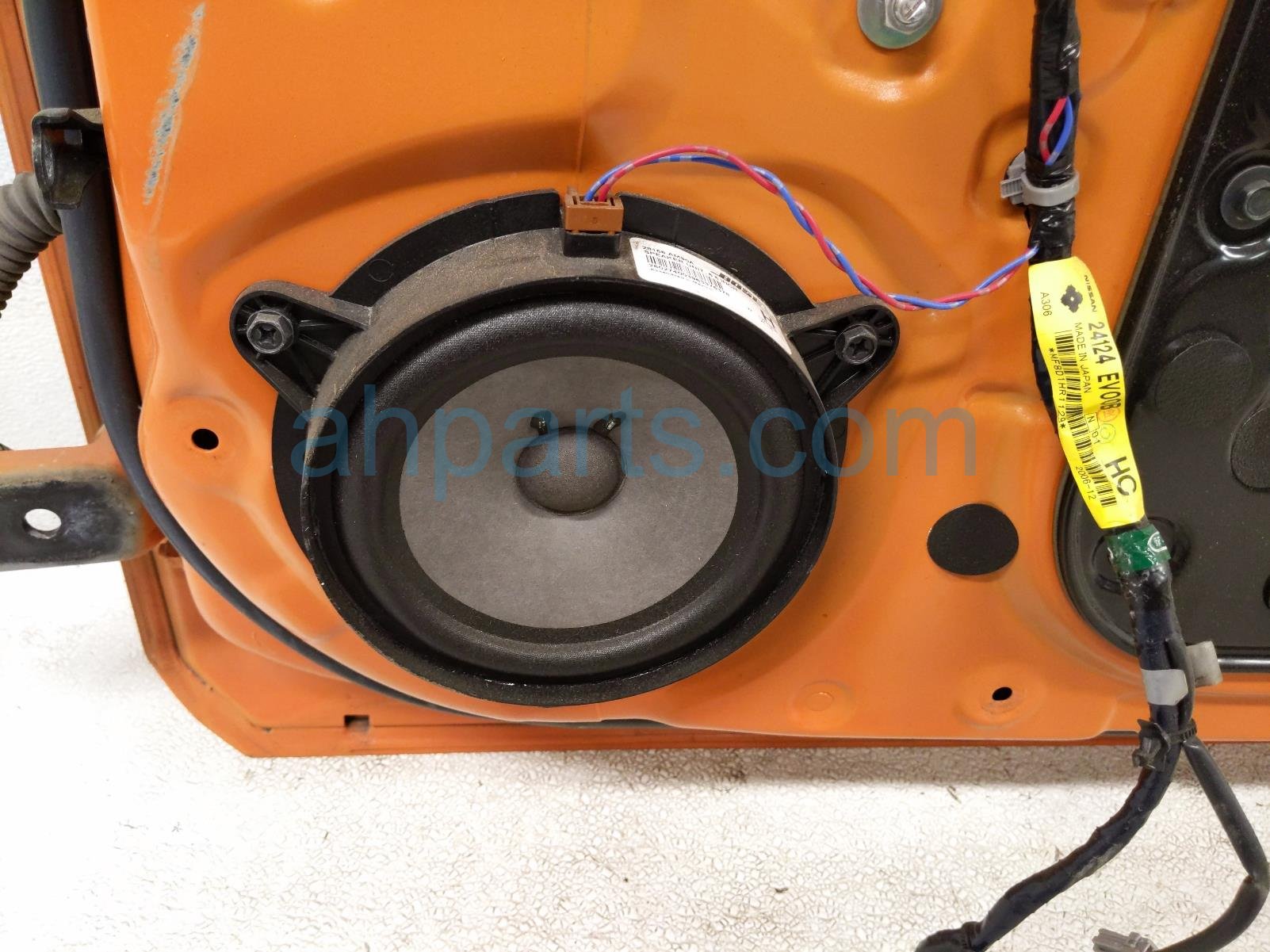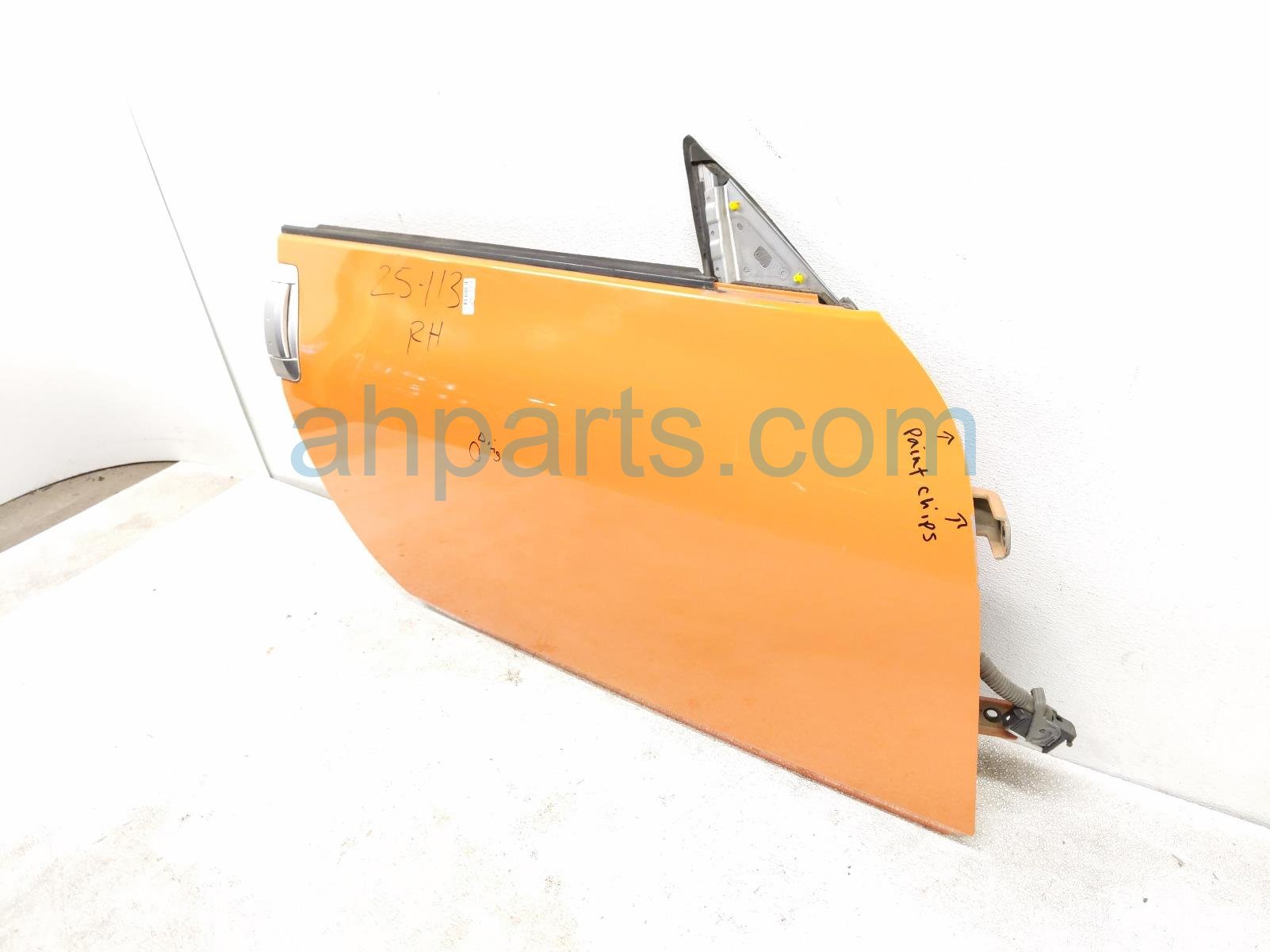 2007 Nissan 350Z front passenger door - orange - no mirror/trim* is a used item with a 1 year warranty. This OEM replacement front passenger door - orange - no mirror/trim* is genuine and has part numbers HMA0M-CD8MA, HMA0MCD8MA, 80300-CD00A, 80300CD00A, 80720-CD01A, 80720CD01A, 80730-CD00A, and 80730CD00A. This Nissan part sells for $295. This item has the following note: 'Has a ding & paint chips at fender edge - grade b.'