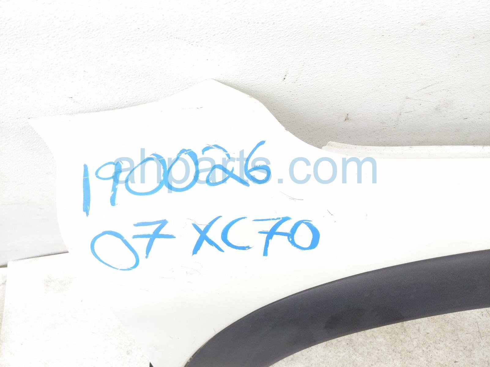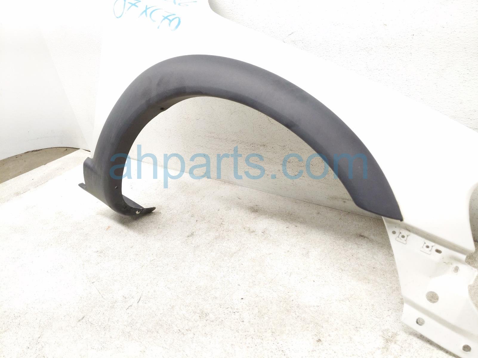 2007 Volvo XC70 front passenger fender w/ flare trim - white is a used item with a 1 year warranty. This OEM replacement front passenger fender w/ flare trim - white is genuine and has part numbers 30745050. This Volvo part sells for $95.