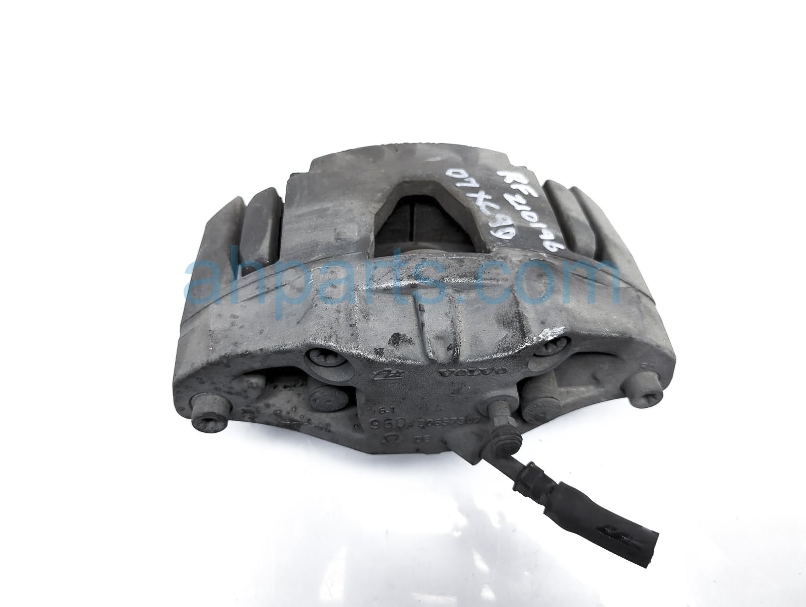 2007 Volvo XC90 front passenger brake caliper is a used item with a 1 year warranty. This OEM replacement front passenger brake caliper is genuine and has part numbers 8602858. This Volvo part sells for $65.
