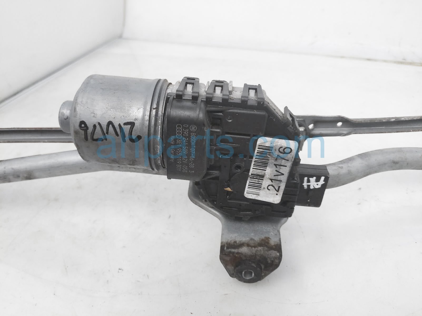 2008 Audi A4 Audi arms front windshield wiper motor is a used item with a 1 year warranty. This OEM replacement arms front windshield wiper motor is genuine and has part numbers 8E1-955-603-D, 8E1955603D, 8E1-955-319, 8E1955319, 8E1-955-119, and 8E1955119. This Audi part sells for $50.