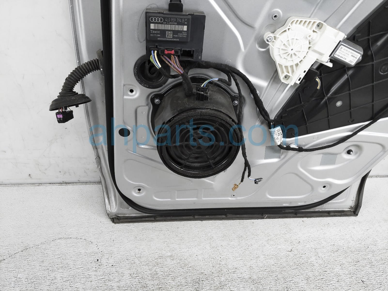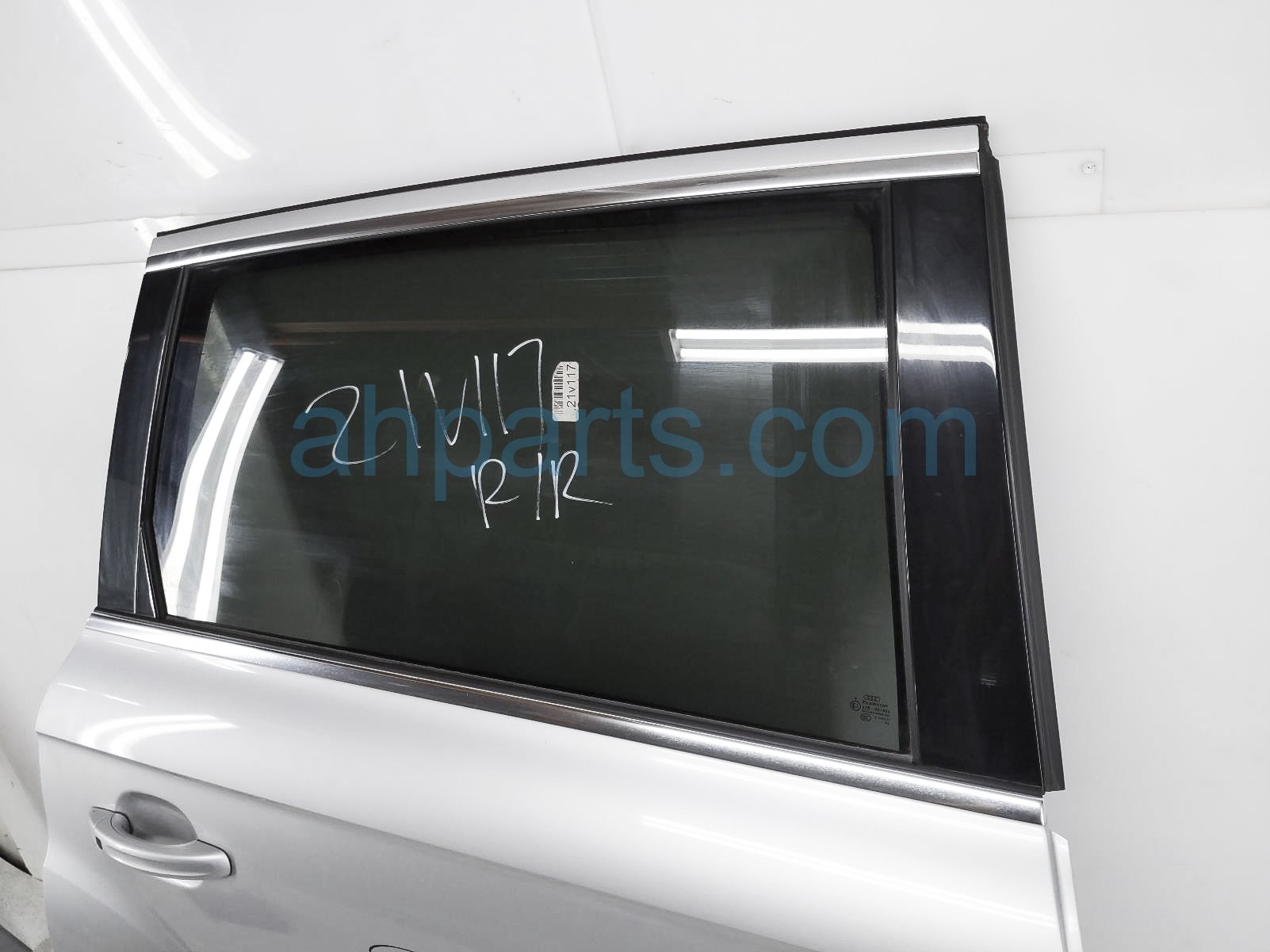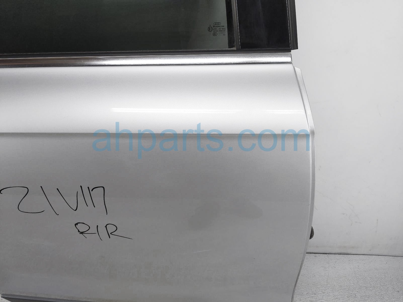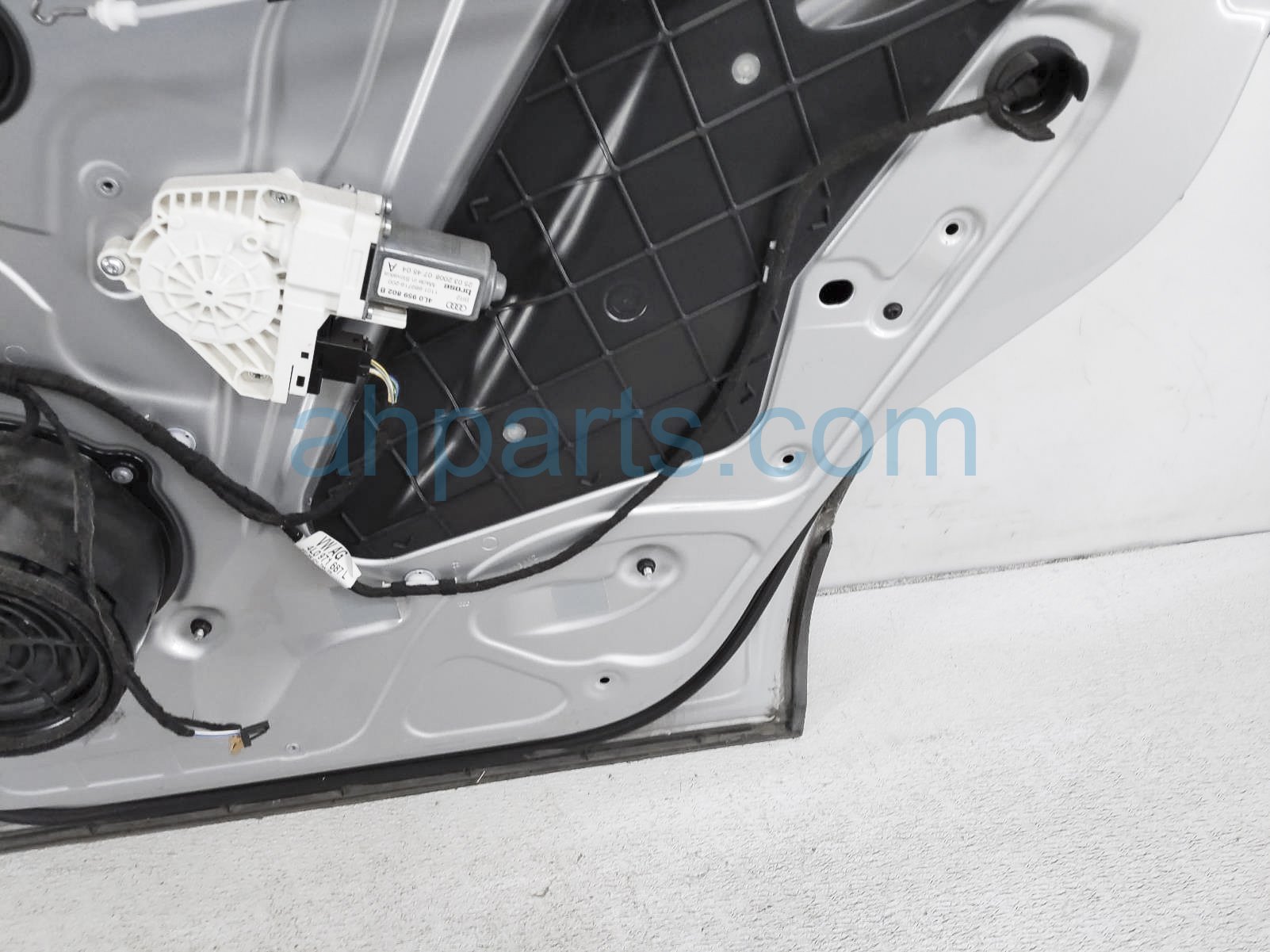 2008 Audi Q7 Audi rear passenger door - silver - no inside trim is a used item with a 1 year warranty. This OEM replacement rear passenger door - silver - no inside trim is genuine and has part numbers 4L0833052. This Audi part sells for $275.