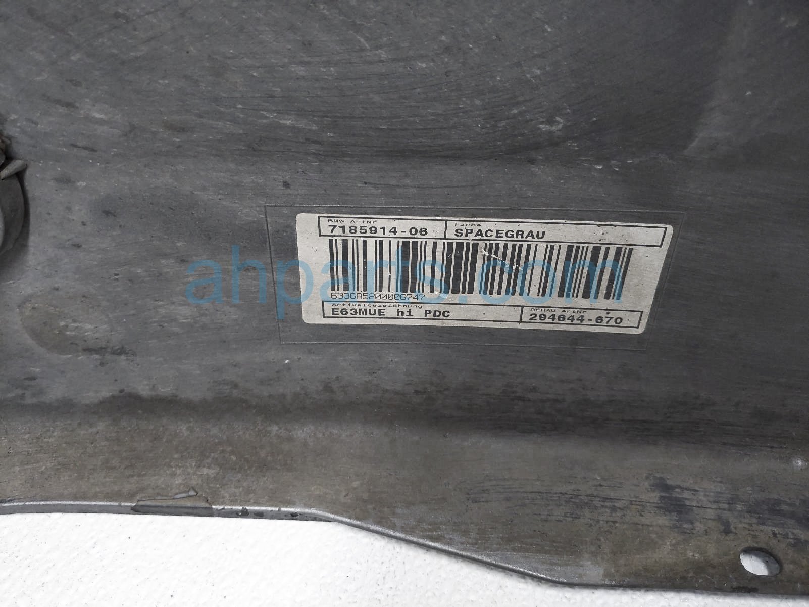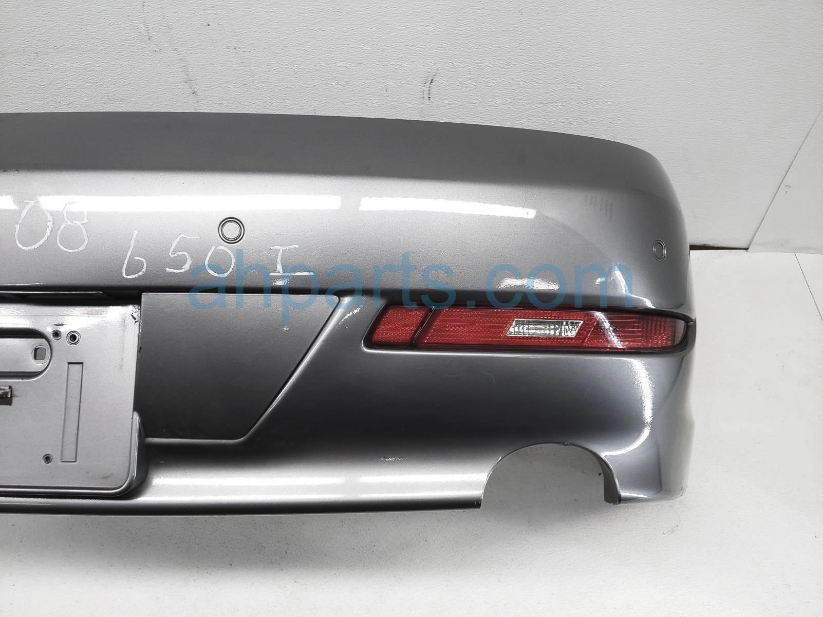2008 BMW 650I rear bumper cover w/sensors - a52 is a used item with a 1 year warranty. This OEM replacement rear bumper cover w/sensors - a52 is genuine and has part numbers 51-12-7-184-664, 51127184664, 63-21-7-177-075, 63217177075, 63-21-7-177-076, 63217177076, 66-20-2-180-147, and 66202180147. This BMW part sells for $350. This item has the following note: 'Has deep scratches. - grade b.'