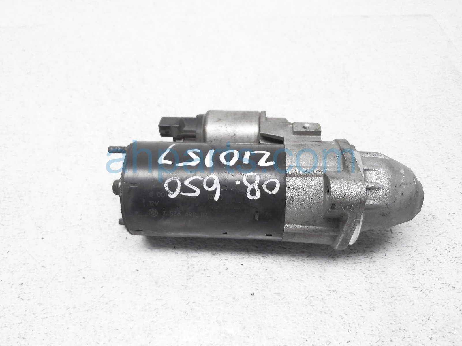 2008 BMW 650I starter motor is a used item with a 1 year warranty. This OEM replacement starter motor is genuine and has part numbers 12-41-7-536-690, and 12417536690. This BMW part sells for $40.
