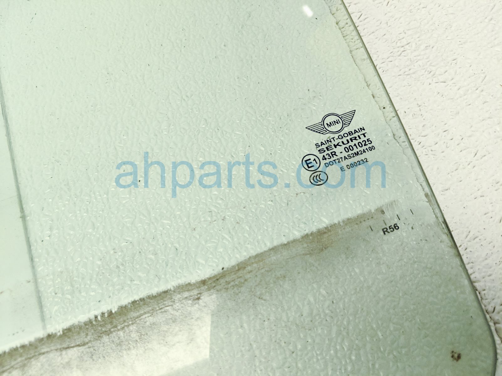 2008 BMW Mini Cooper front / driver door glass window is a used item with a 1 year warranty. This OEM replacement front / driver door glass window is genuine and has part numbers 51-33-7-130-909, and 51337130909. This BMW part sells for $60.