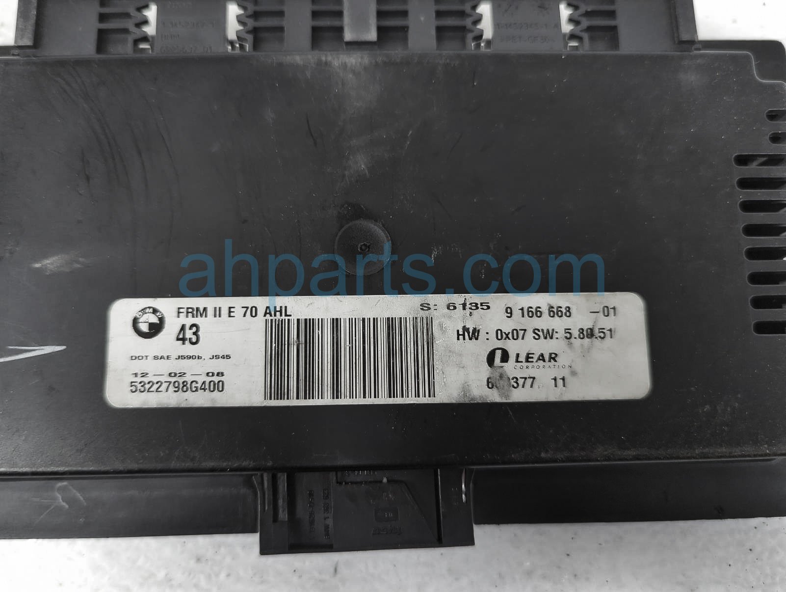 2008 BMW X5 bcm footwell module unit is a used item with a 1 year warranty. This OEM replacement bcm footwell module unit is genuine and has part numbers 61-35-9-166-668, and 61359166668. This BMW part sells for $150.