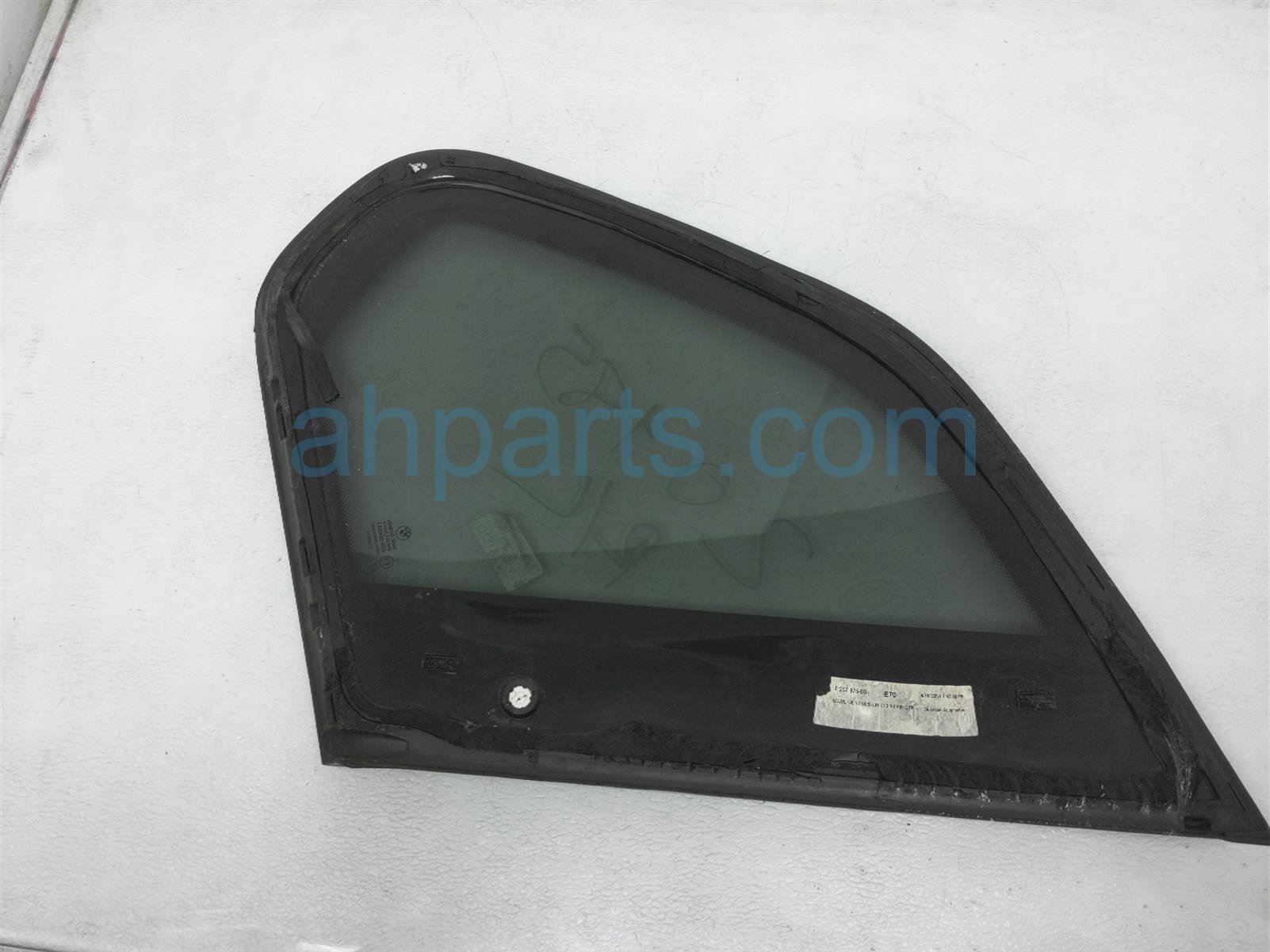 2008 BMW X5 driver quarter window glass is a used item with a 1 year warranty. This OEM replacement driver quarter window glass is genuine and has part numbers 51-37-7-207-881, and 51377207881. This BMW part sells for $74.