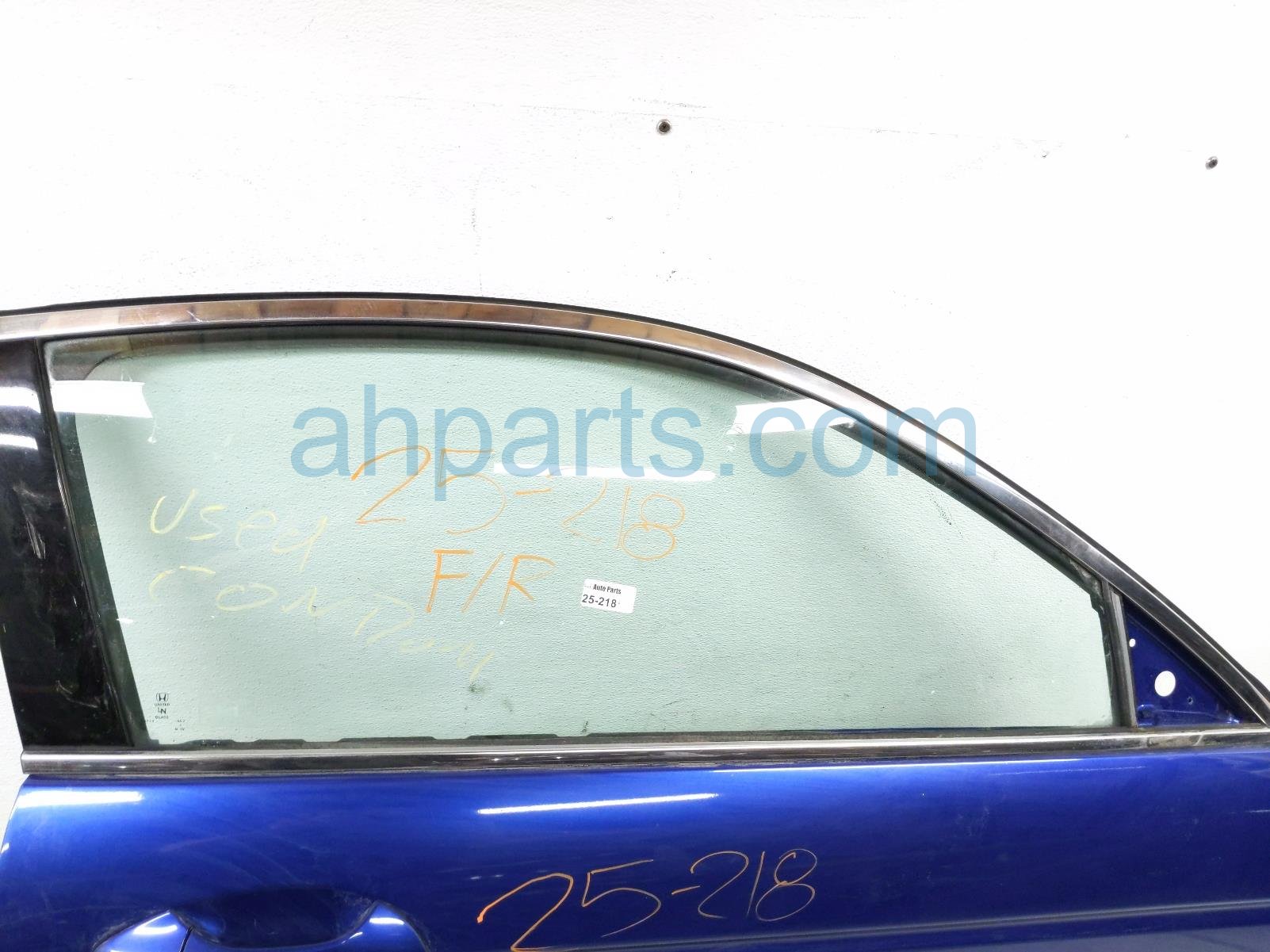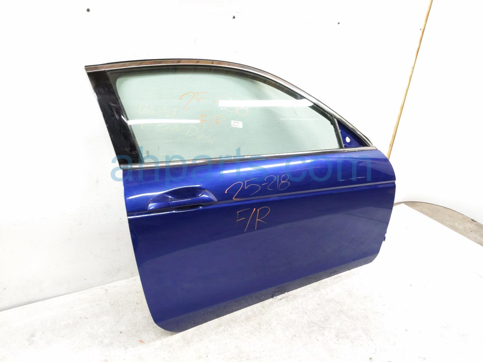 2008 Honda Accord front passenger door - blue - no mirror/trim is a used item with a 1 year warranty. This OEM replacement front passenger door - blue - no mirror/trim is genuine and has part numbers 73300-TE0-A10, 73300TE0A10, 72210-TE0-A12, 72210TE0A12, 67010-TE0-A90ZZ, and 67010TE0A90ZZ. This Honda part sells for $325. This item has the following note: 'This item has some small scuffs/scratches. grade a.'
