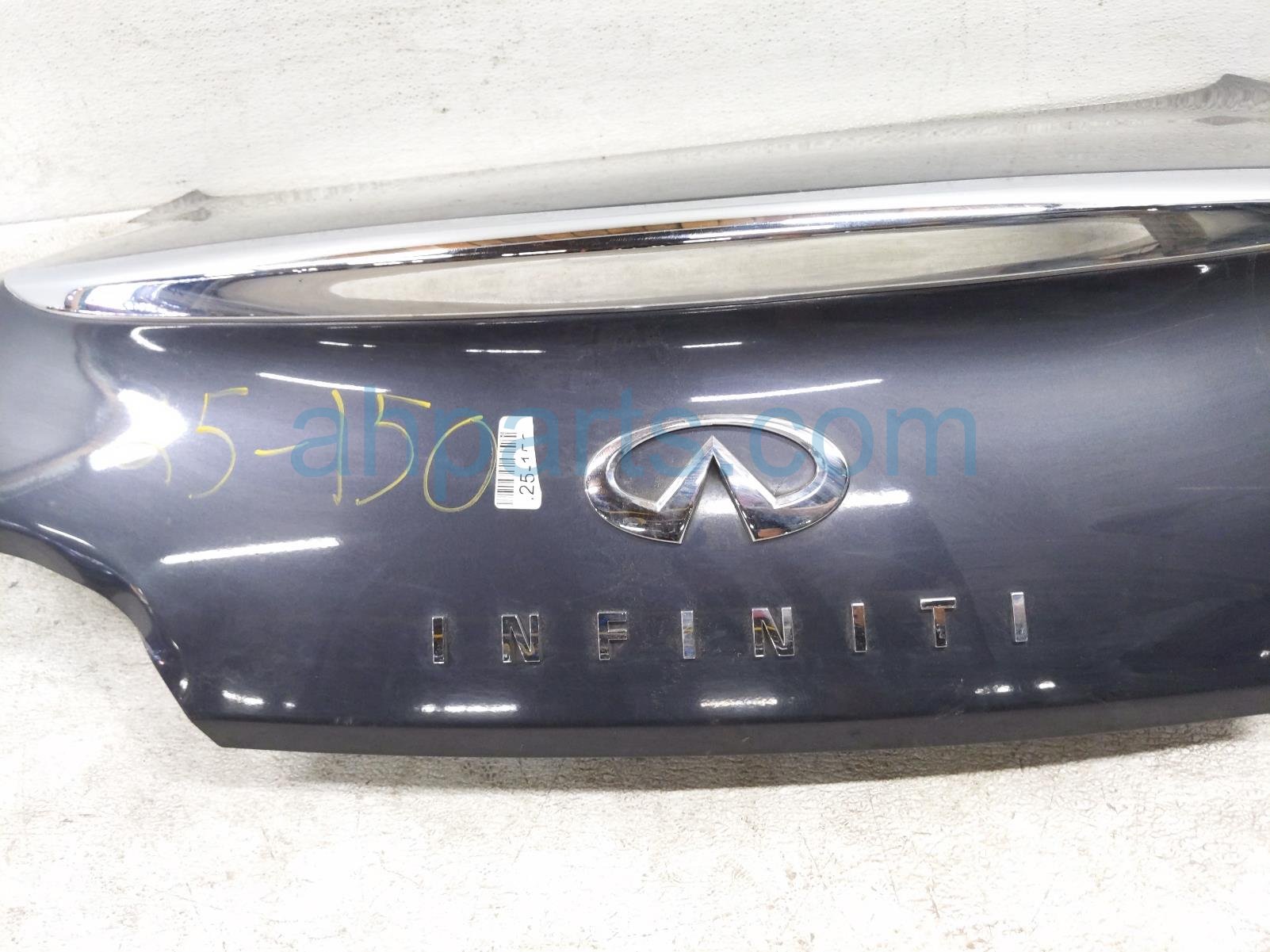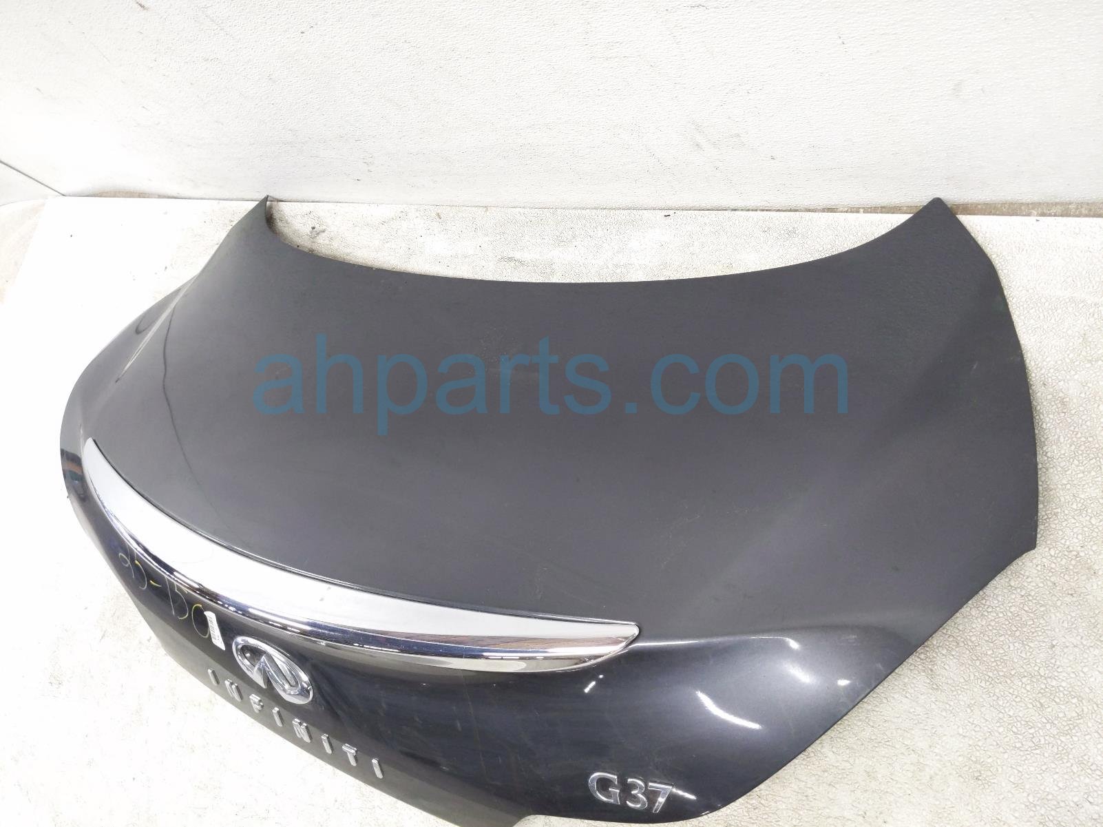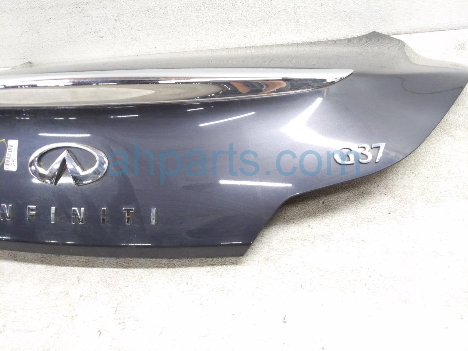 2008 Infiniti G37 trunk / decklid - blue* is a used item with a 1 year warranty. This OEM replacement trunk / decklid - blue* is genuine and has part numbers H430M-JL0MB, H430MJL0MB, 84966-JL00A, and 84966JL00A. This Infiniti part sells for $245. This item has the following note: 'Dented lower driver side - grade b.'