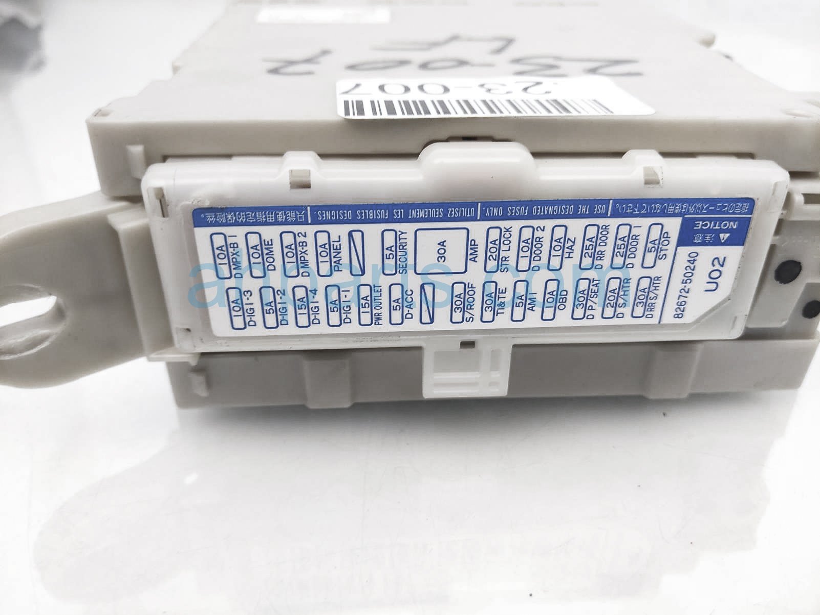 2008 Lexus LS460 driver multiplex fuse & junction box is a used item with a 1 year warranty. This OEM replacement driver multiplex fuse & junction box is genuine and has part numbers 82730-50471, 8273050471, 89221-50171, and 8922150171. This Lexus part sells for $50.