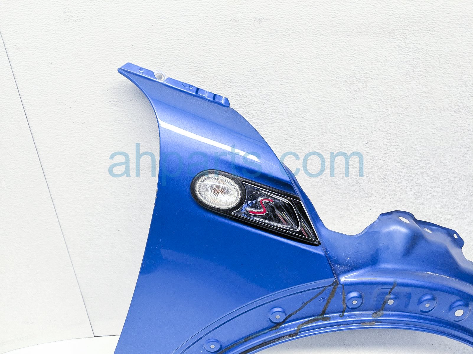 2009 BMW Clubman Minicooper front passenger fender - blue is a used item with a 1 year warranty. This OEM replacement front passenger fender - blue is genuine and has part numbers 41-35-5-A55-B02, and 41355A55B02. This BMW part sells for $75.