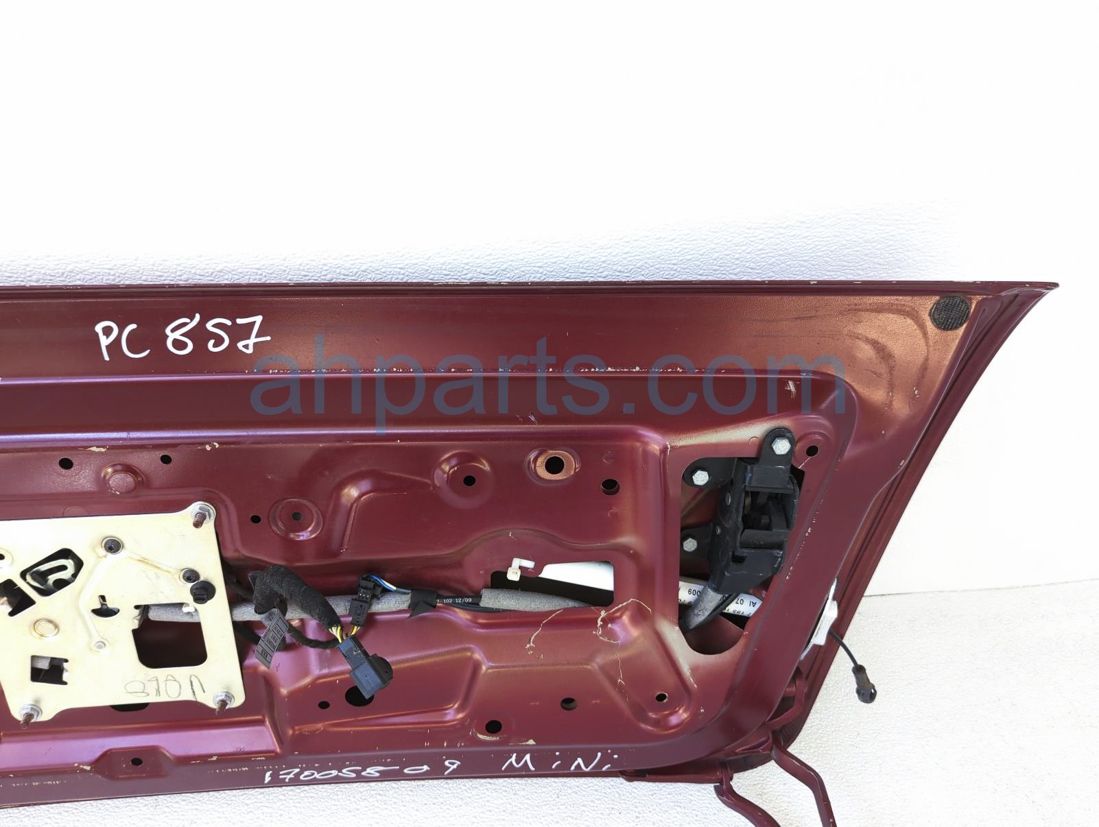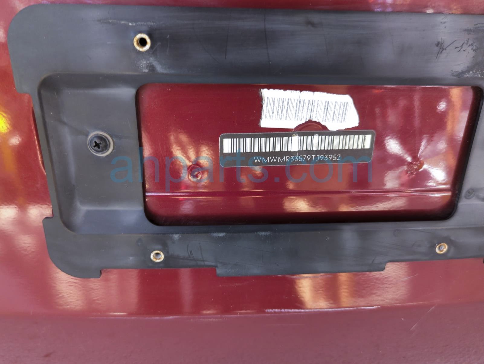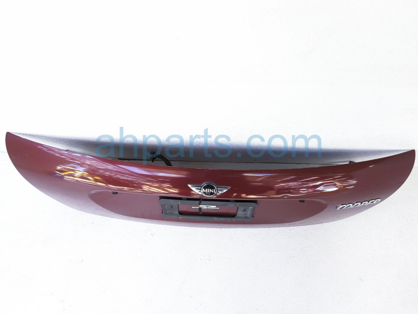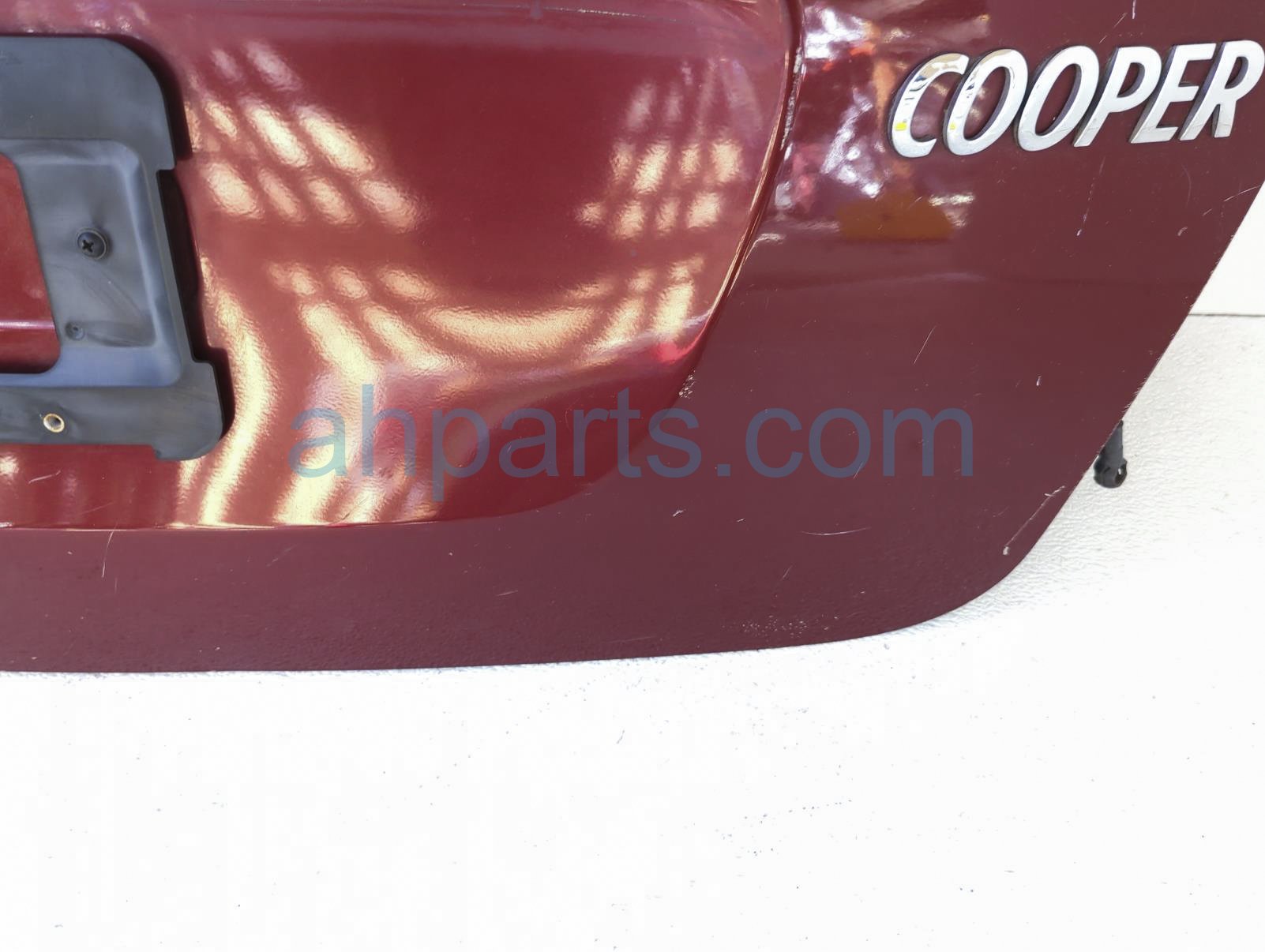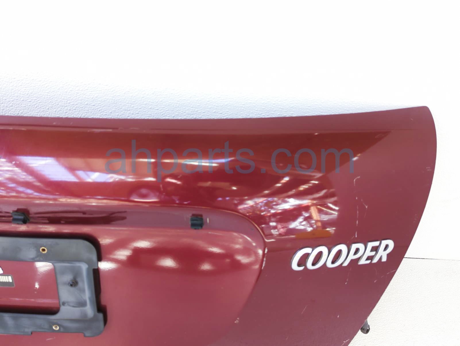 2009 BMW Mini Cooper deck / trunk lid rear lower tailgate portion - red is a used item with a 1 year warranty. This OEM replacement deck / trunk lid rear lower tailgate portion - red is genuine and has part numbers 41-00-2-752-015, 41002752015, 51-24-2-754-528, and 51242754528. This BMW part sells for $150. This item has the following note: 'This item has some light scratches.'