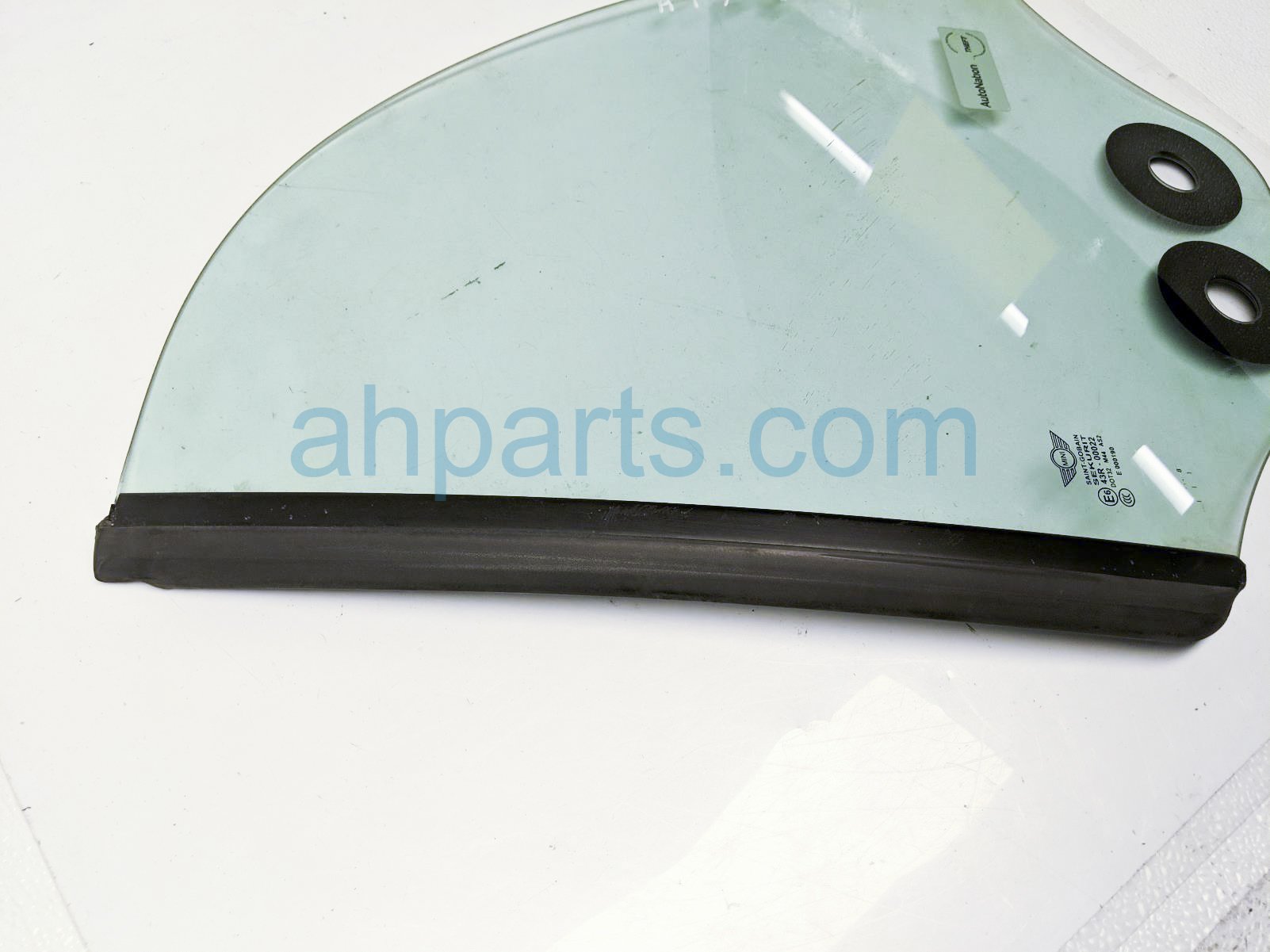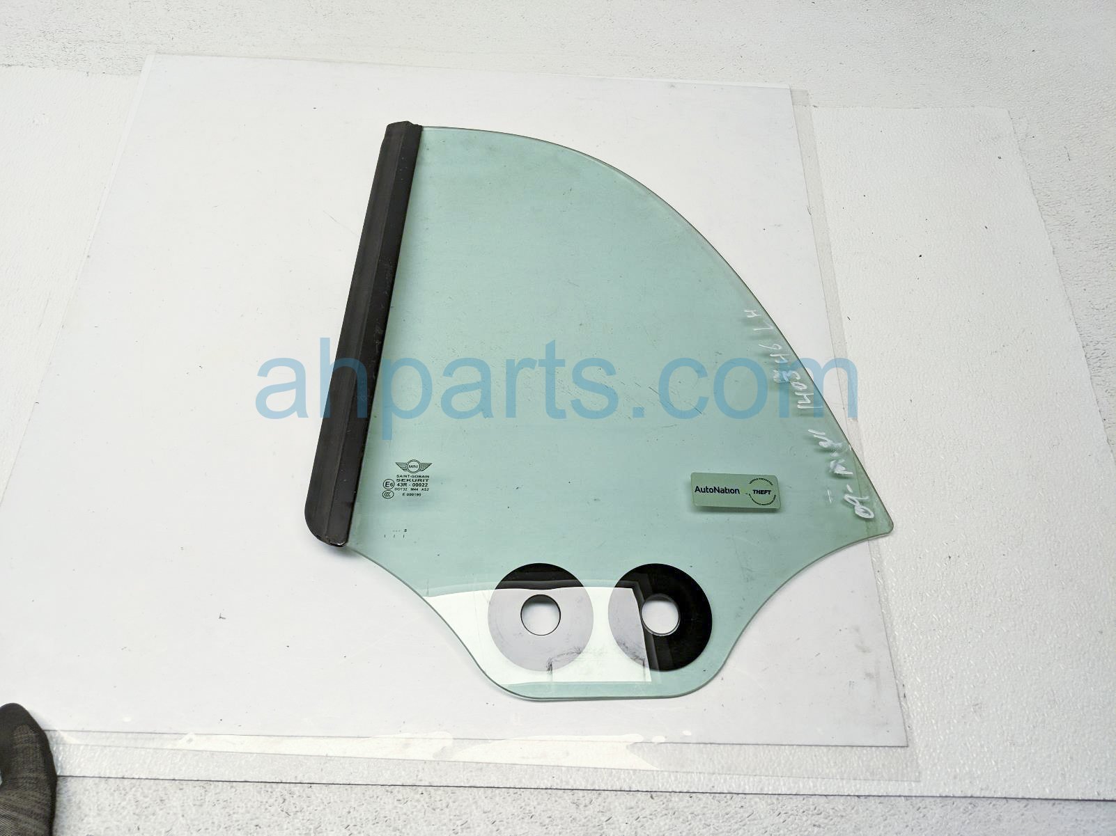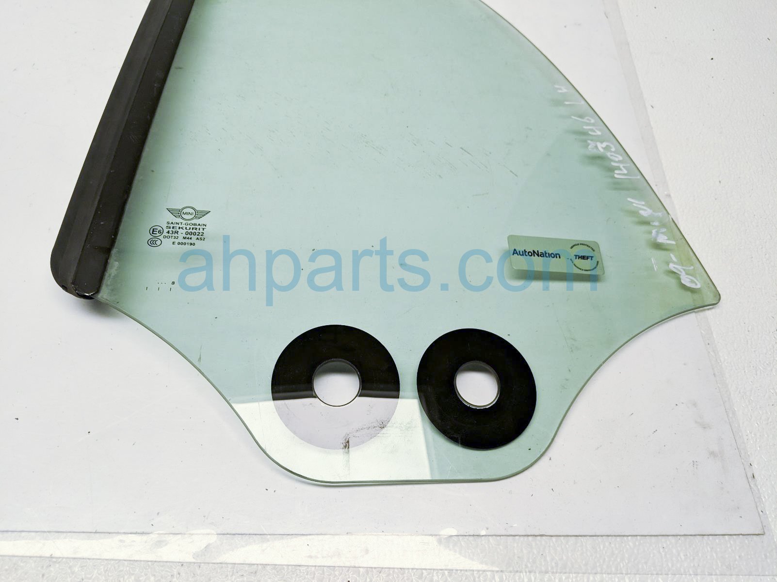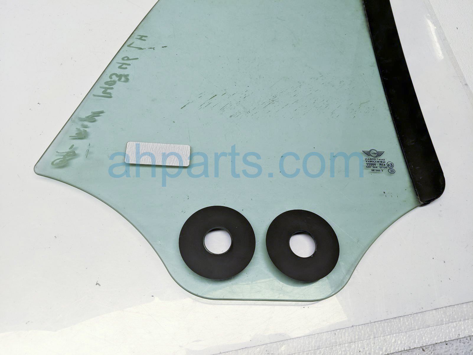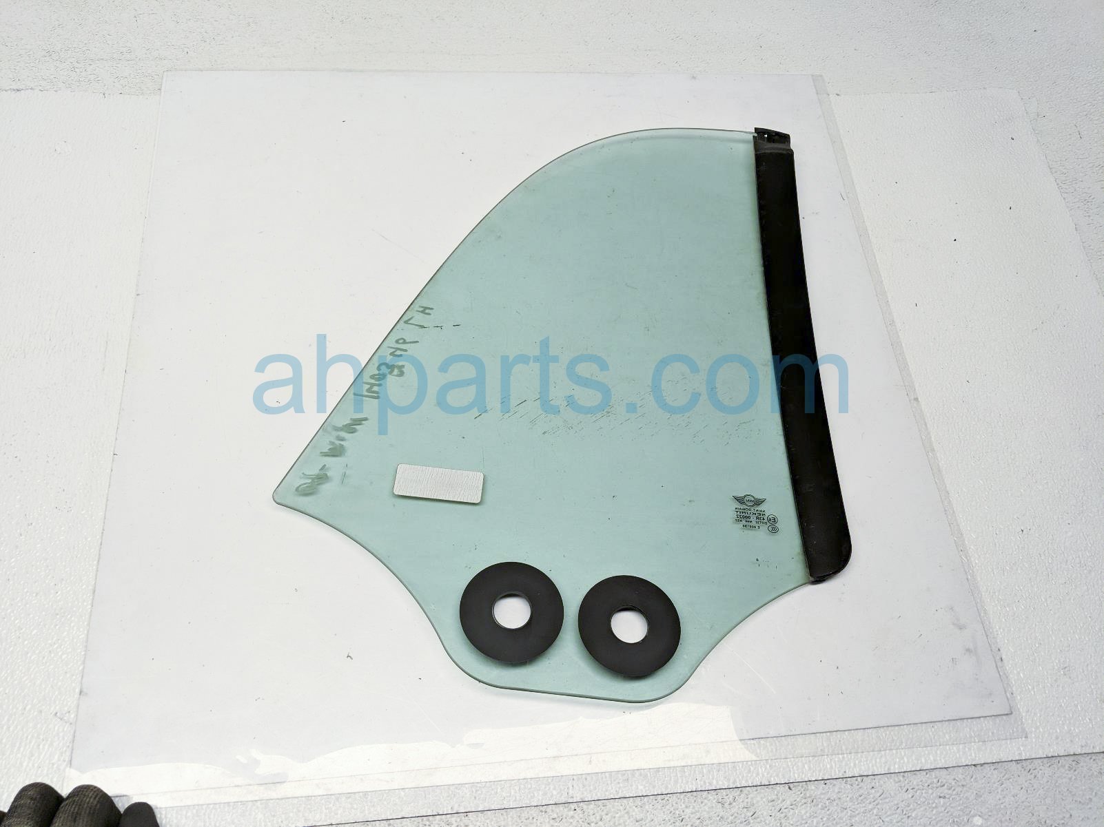 2009 BMW Mini Cooper driver quarter window glass is a used item with a 1 year warranty. This OEM replacement driver quarter window glass is genuine and has part numbers 51-37-2-757-769, and 51372757769. This BMW part sells for $65.