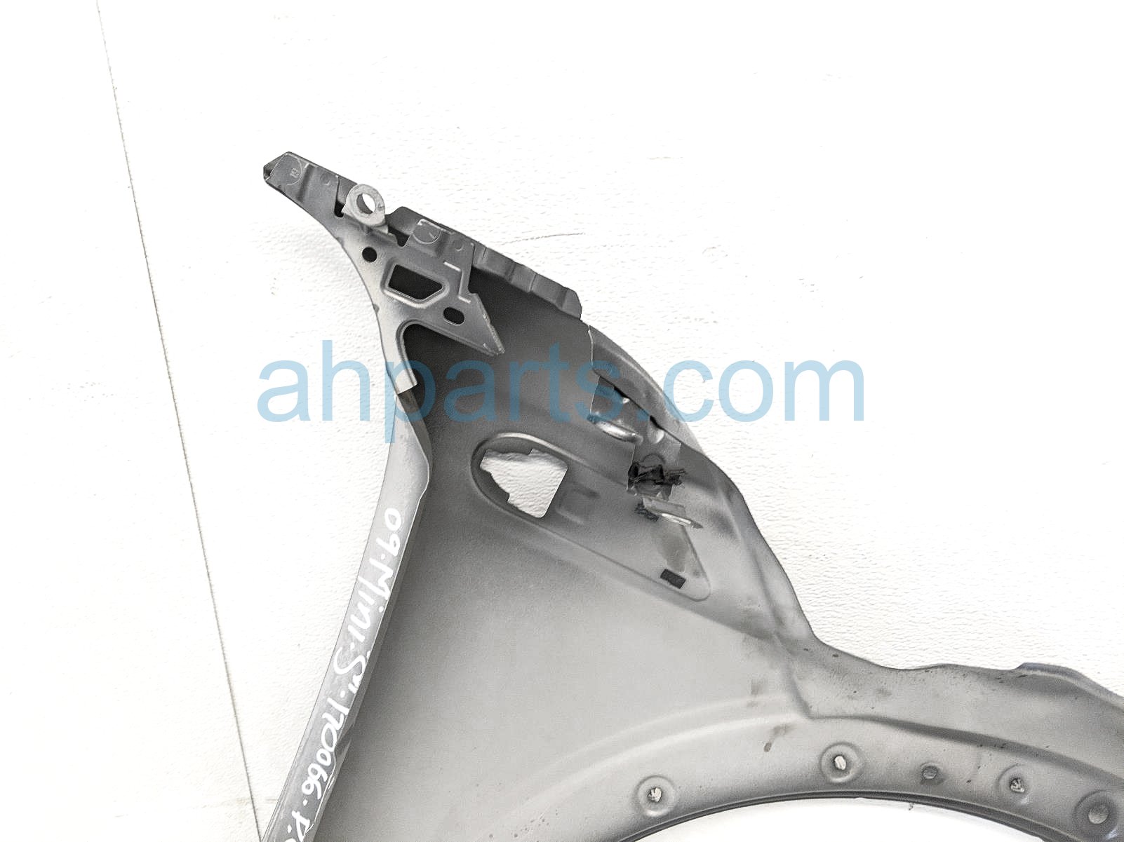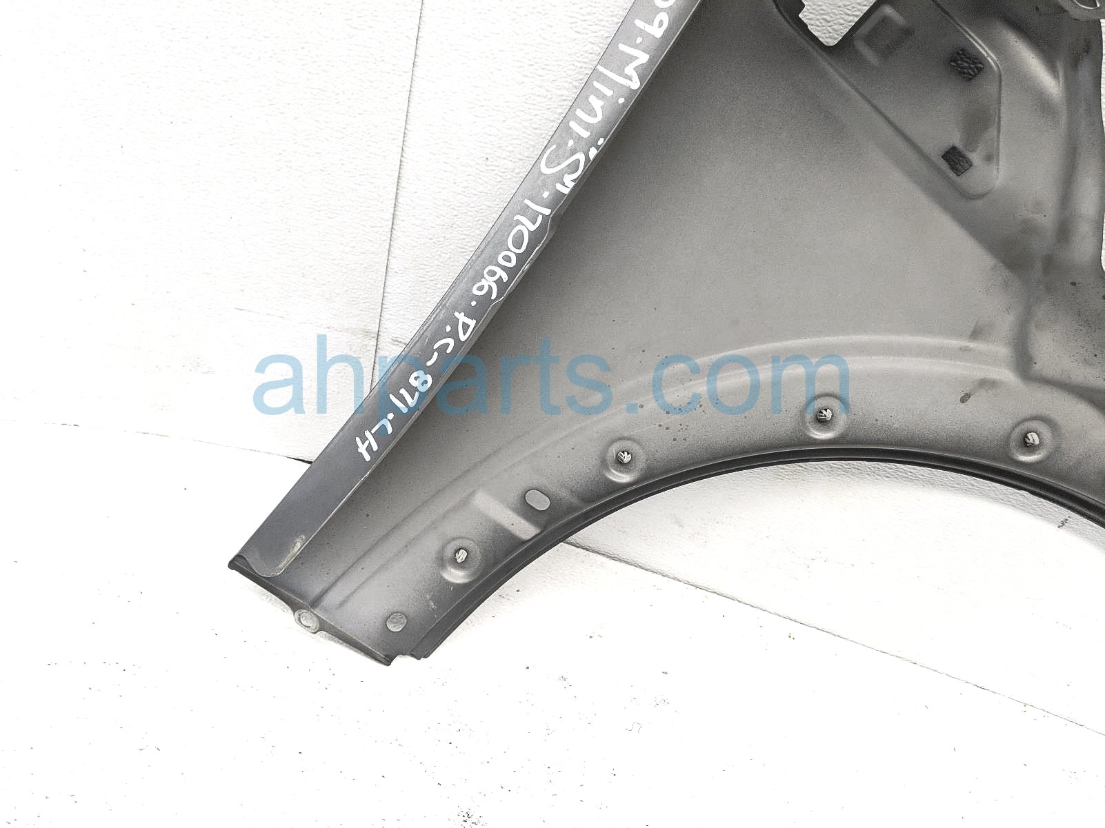 2009 BMW Mini Cooper front driver fender - gray is a used item with a 1 year warranty. This OEM replacement front driver fender - gray is genuine and has part numbers 41-35-5-A55-B01, and 41355A55B01. This BMW part sells for $50.