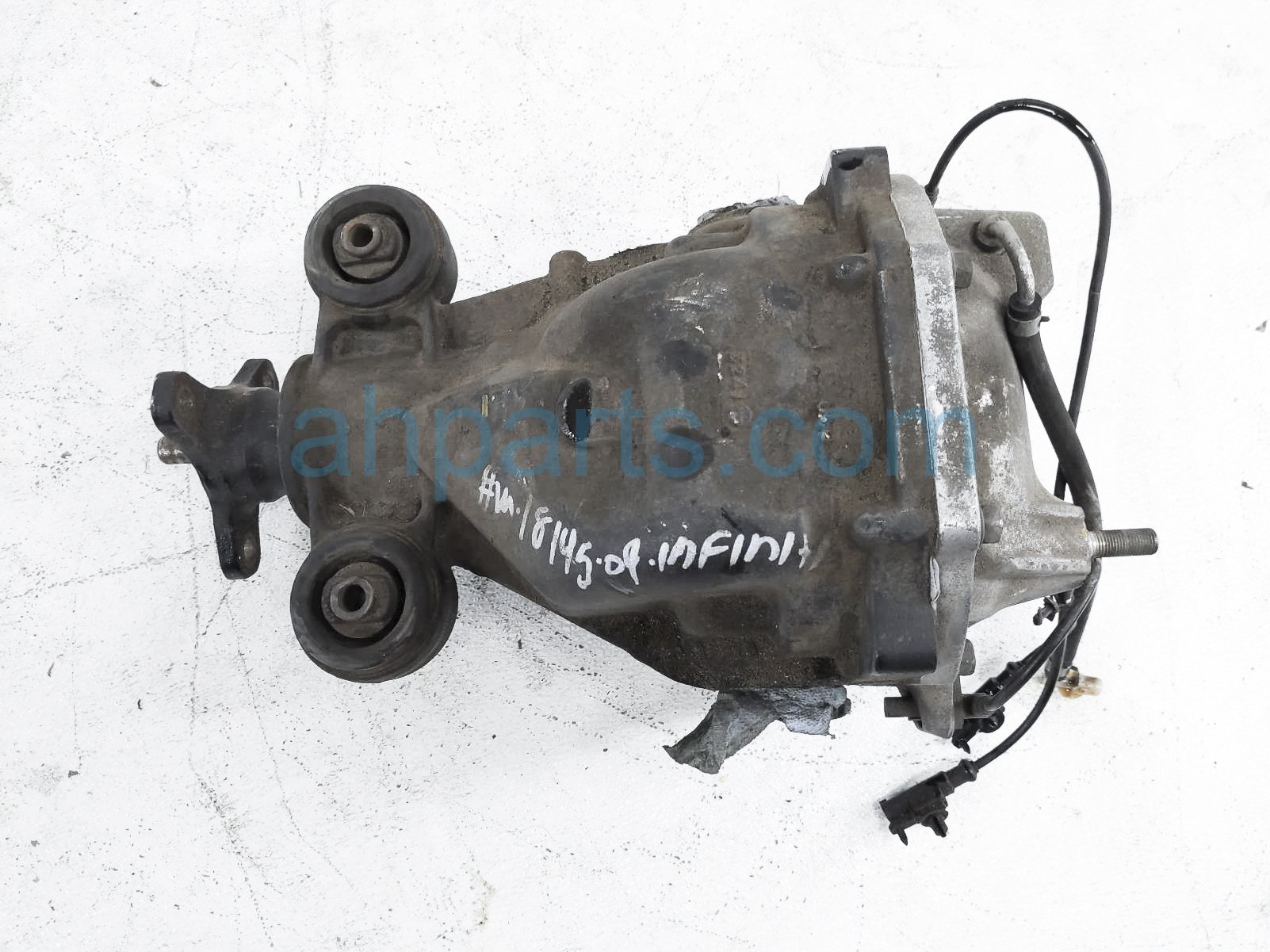 2009 Infiniti G37 rear differential carrier is a used item with a 1 year warranty. This OEM replacement rear differential carrier is genuine and has part numbers 38301EG56A. This Infiniti part sells for $149.