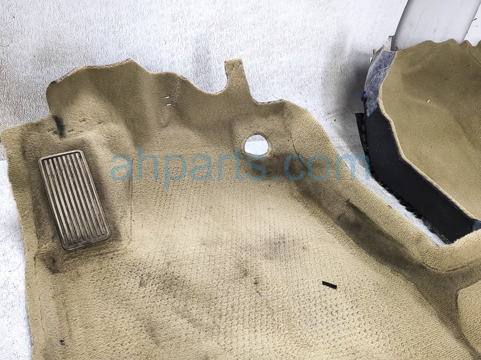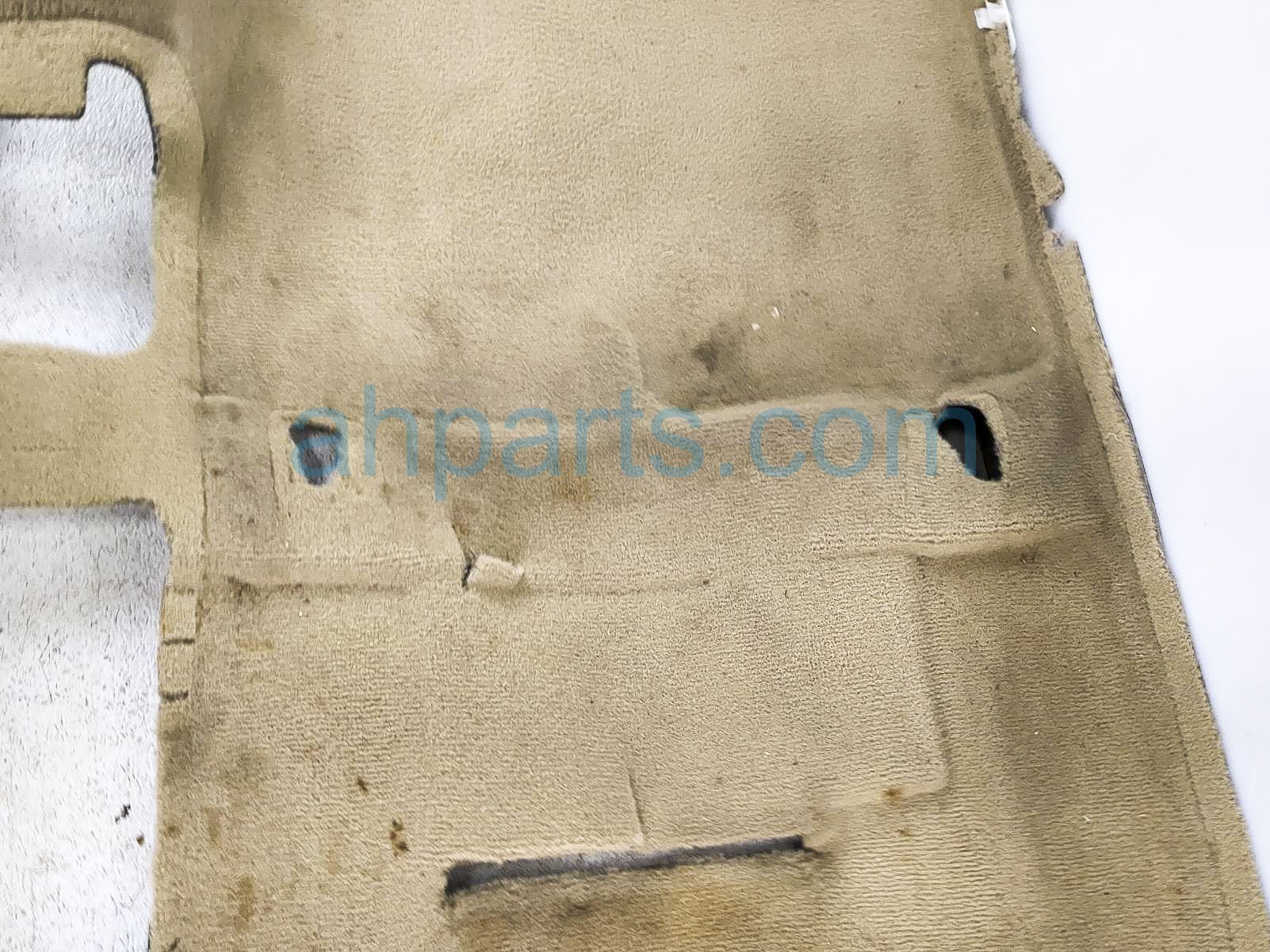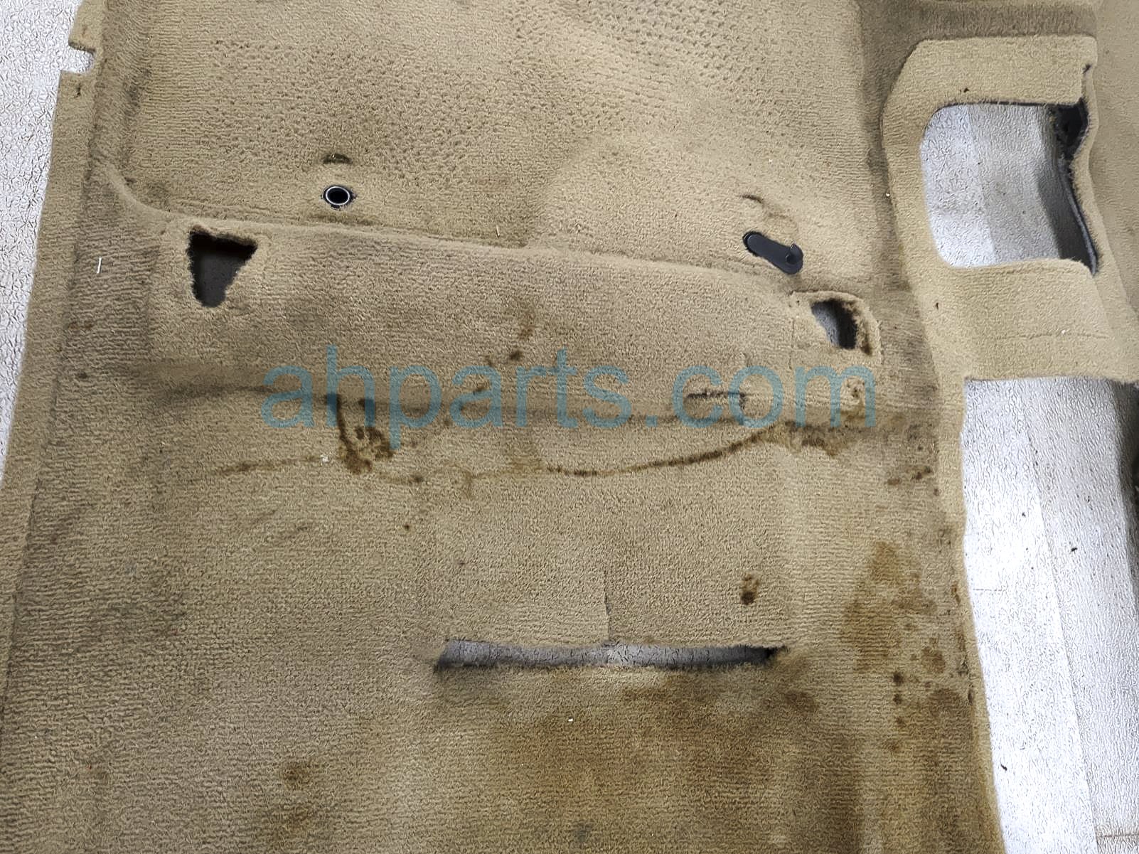 2009 Lexus RX350 front / ground interior floor carpet - beige is a used item with a 1 year warranty. This OEM replacement front / ground interior floor carpet - beige is genuine and has part numbers 58510-0E011-A0, and 585100E011A0. This Lexus part sells for $149. This item has the following note: 'This item has stains - grade b.'