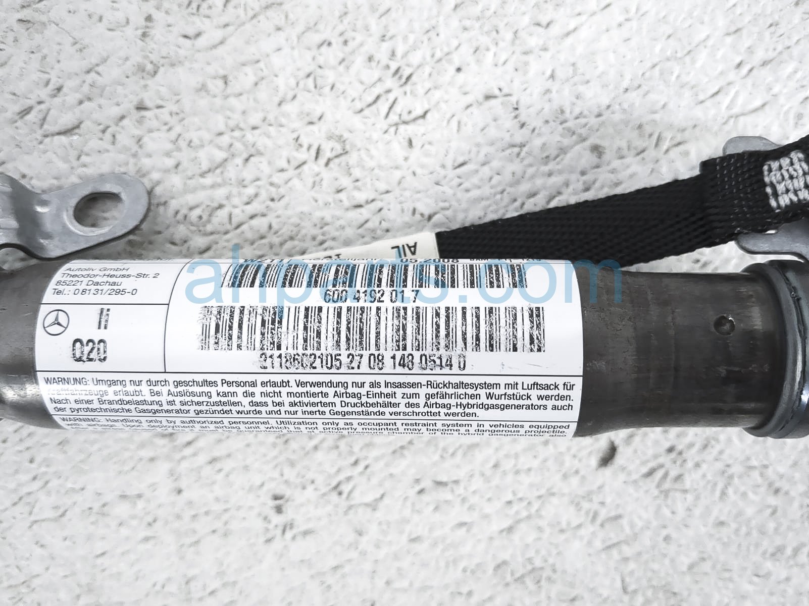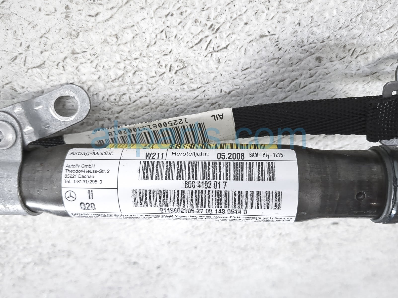 2009 Mercedes E320 driver roof curtain airbag is a used item with a 1 year warranty. This OEM replacement driver roof curtain airbag is genuine and has part numbers 211-860-21-05, and 2118602105. This Mercedes part sells for $99.
