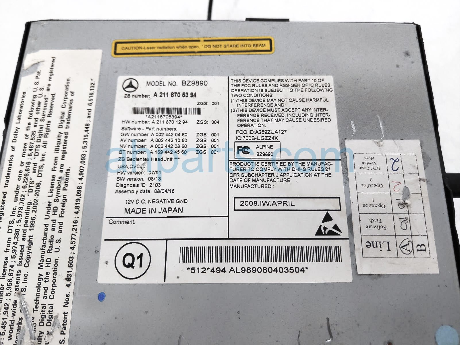 2009 Mercedes E320 radio receiver & display screen is a used item with a 1 year warranty. This OEM replacement radio receiver & display screen is genuine and has part numbers 211-870-53-94, and 2118705394. This Mercedes part sells for $299.