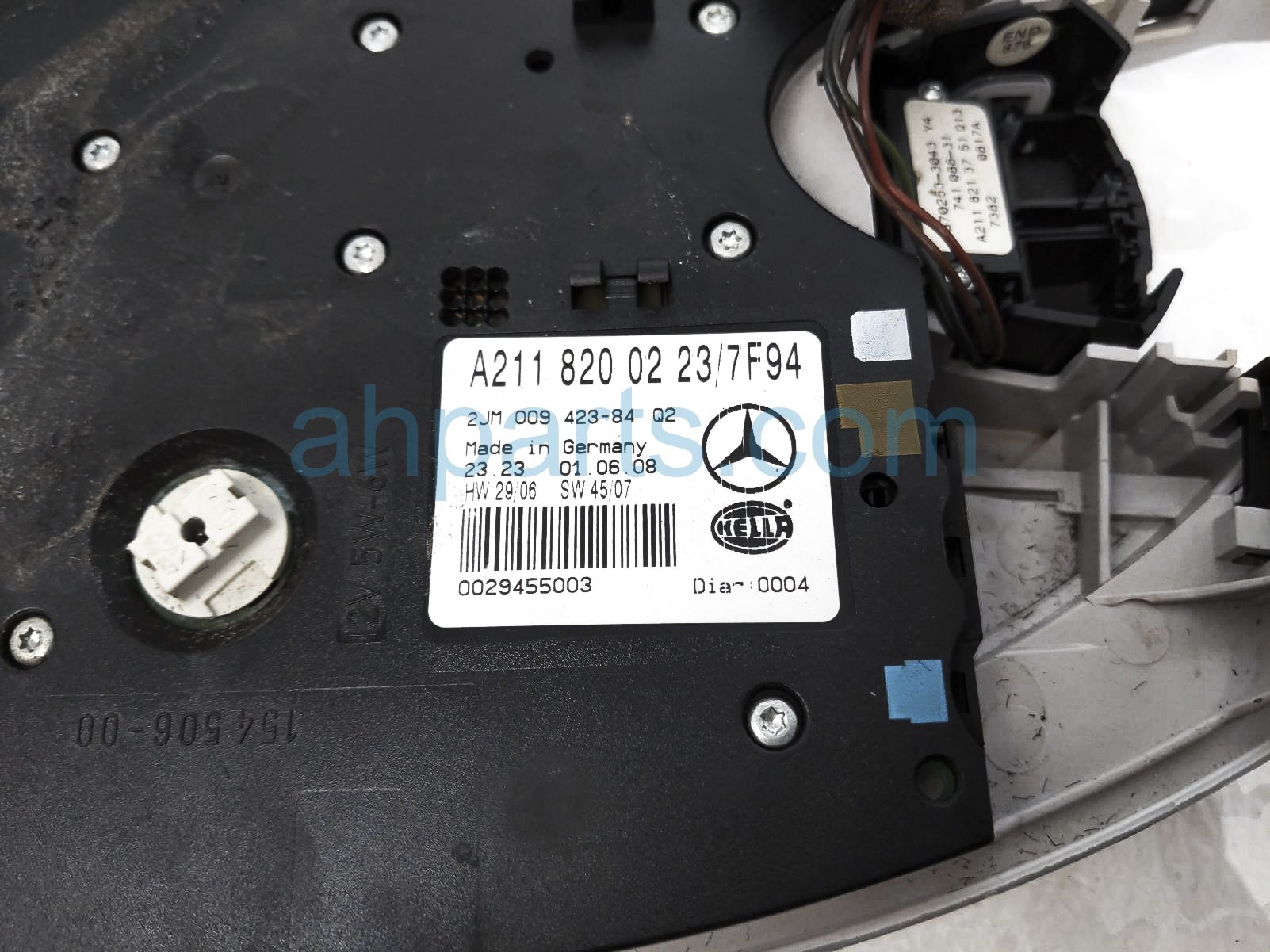 2009 Mercedes E320 roof console / map light - grey is a used item with a 1 year warranty. This OEM replacement roof console / map light - grey is genuine and has part numbers 211-820-07-23-7F94, and 21182007237F94. This Mercedes part sells for $75.