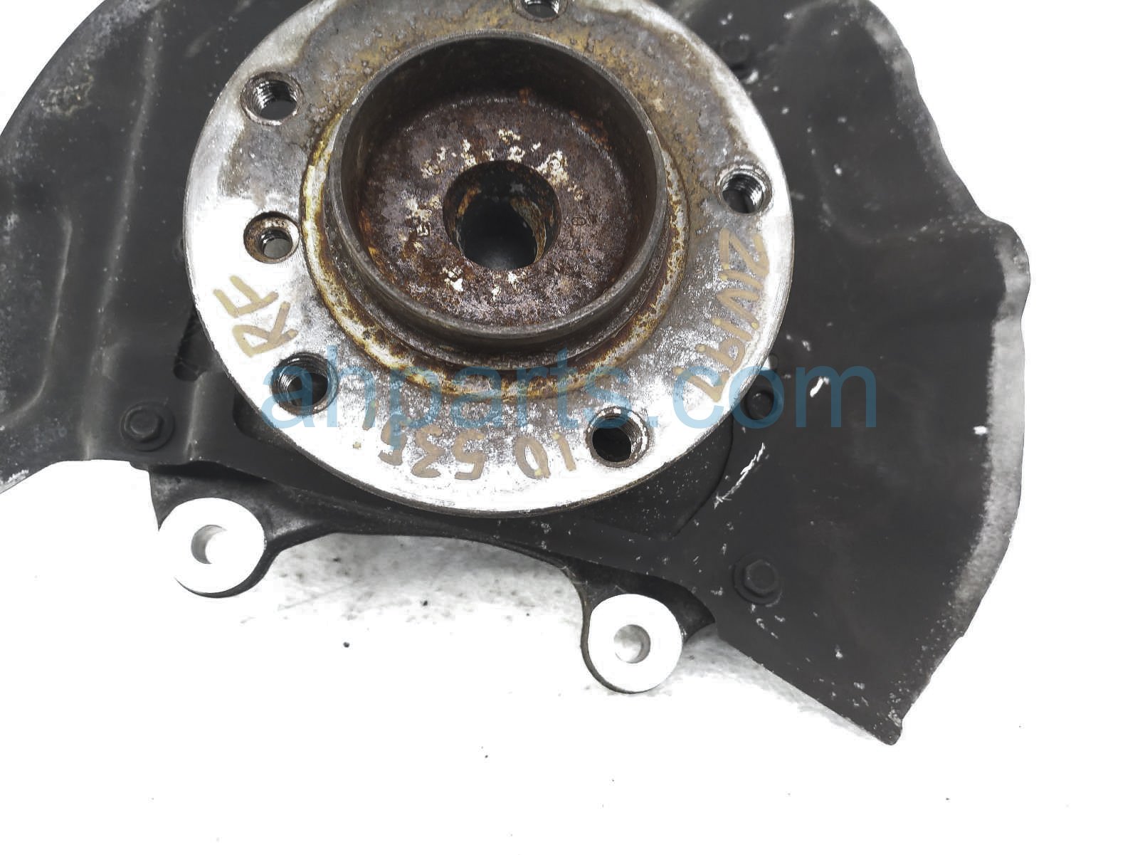 2010 BMW 535I front passenger spindle knuckle hub is a used item with a 1 year warranty. This OEM replacement front passenger spindle knuckle hub is genuine and has part numbers 31-21-6-760-954, 31216760954, 31-22-6-765-601, and 31226765601. This BMW part sells for $100.
