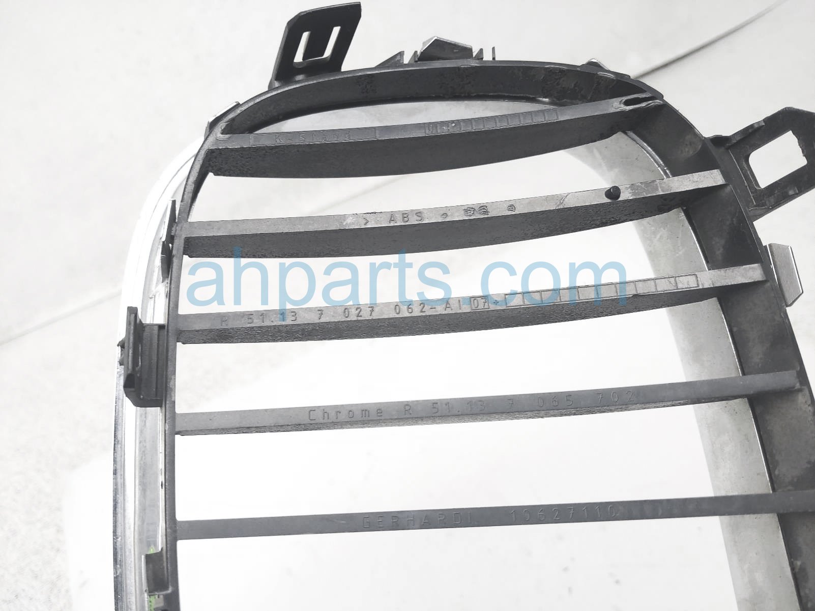 2010 BMW 535I passenger center upper grille - chrome is a used item with a 1 year warranty. This OEM replacement passenger center upper grille - chrome is genuine and has part numbers 51-13-7-027-062, 51137027062, 7 027 and 062. This BMW part sells for $30.
