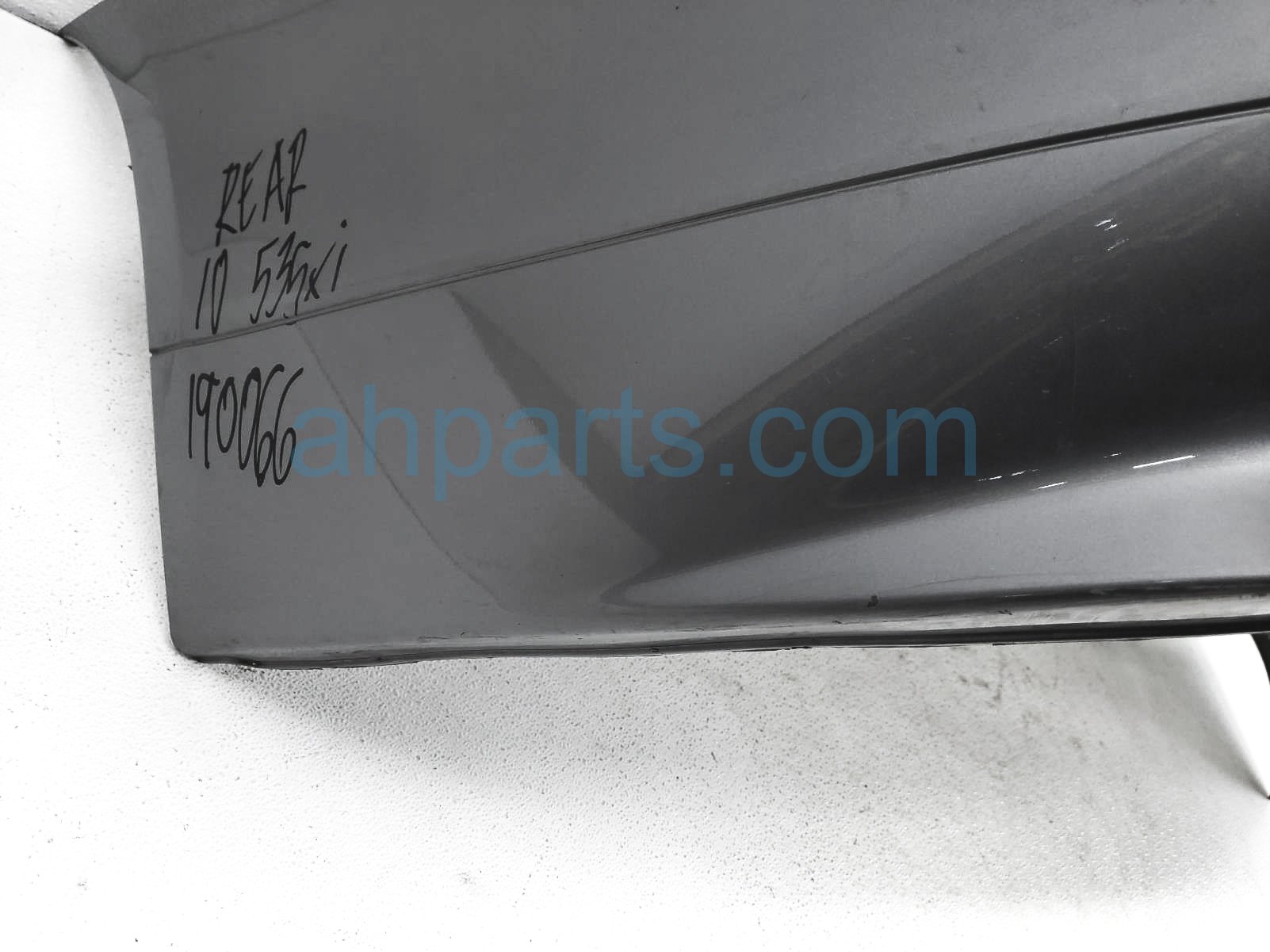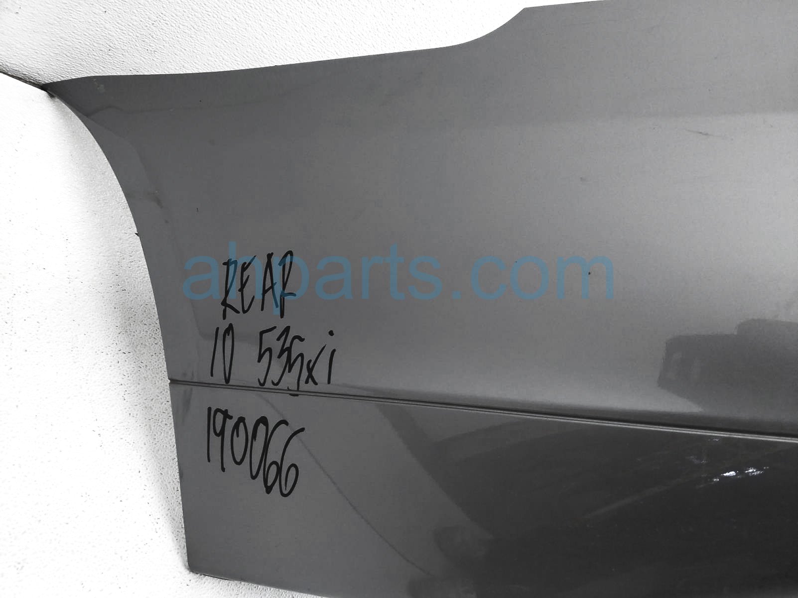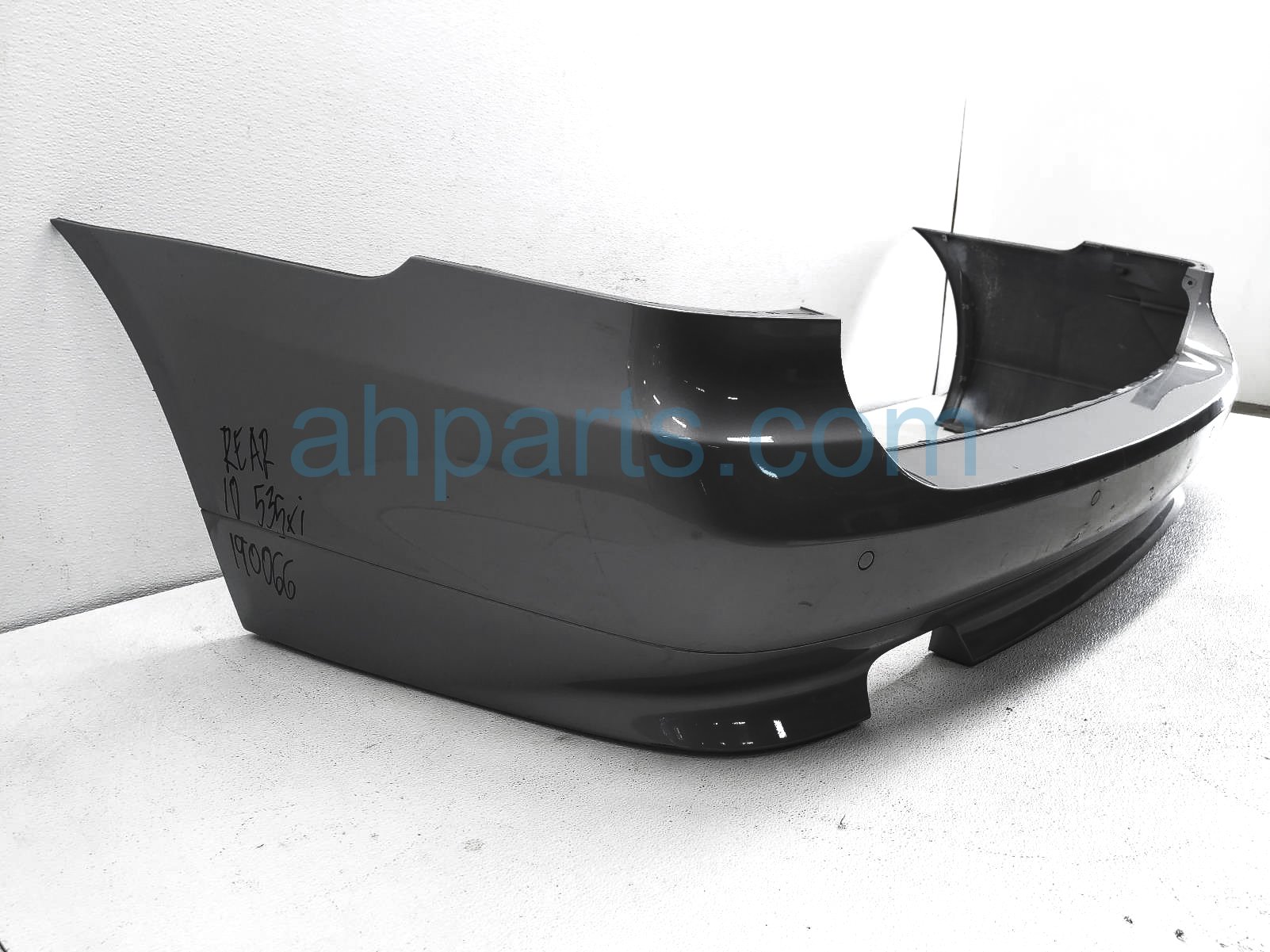 2010 BMW 535I rear bumper cover - gray w/sensors is a used item with a 1 year warranty. This OEM replacement rear bumper cover - gray w/sensors is genuine and has part numbers 51127184750, and 2202122126. This BMW part sells for $199. This item has the following note: 'This item has scuffs on the lower section and minor indents, with scratches on the middle section - grade b.'