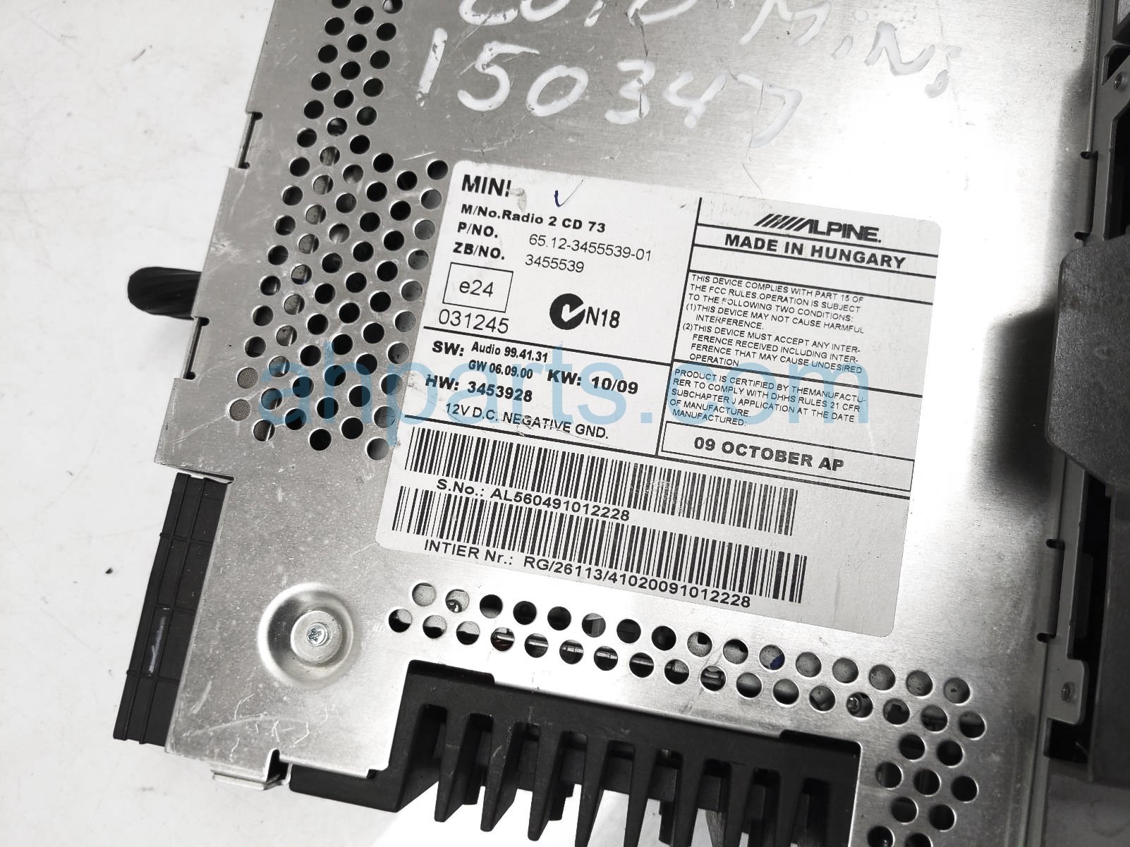 2010 BMW Mini Cooper audio radio receiver unit is a used item with a 1 year warranty. This OEM replacement audio radio receiver unit is genuine and has part numbers 65-12-3-455-539, and 65123455539. This BMW part sells for $60.