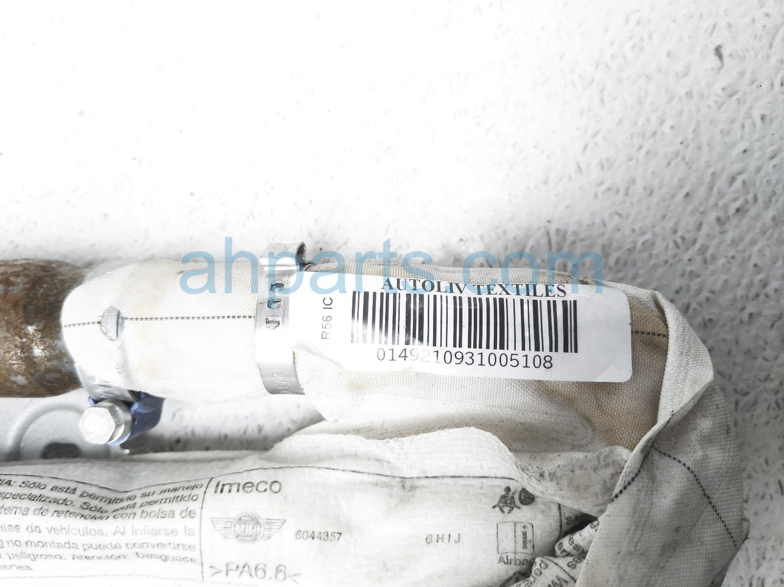 2010 BMW Mini Cooper driver roof curtain airbag is a used item with a 1 year warranty. This OEM replacement driver roof curtain airbag is genuine and has part numbers 72-12-7-134-077, and 72127134077. This BMW part sells for $75.