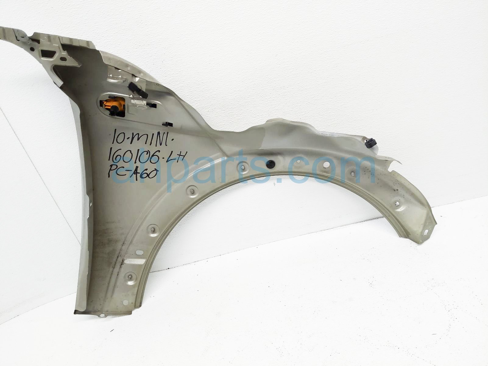2010 BMW Mini Cooper front driver fender - gold - is a used item with a 1 year warranty. This OEM replacement front driver fender - gold - is genuine and has part numbers 41-35-5-A55-B01, and 41355A55B01. This BMW part sells for $50. This item has the following note: 'Has some scratches.'