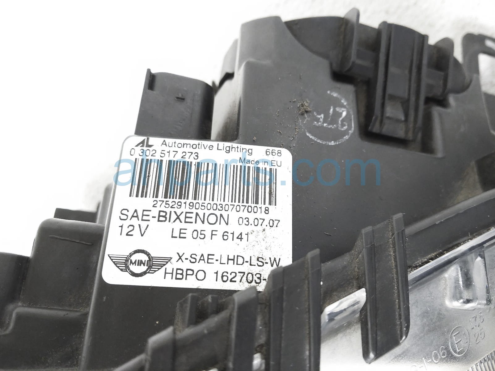 2010 BMW Mini Cooper headlight driver head lamp / light - is a used item with a 1 year warranty. This OEM replacement headlight driver head lamp / light - is genuine and has part numbers 63127270025. This BMW part sells for $199. This item has the following note: 'Hazy lens.'