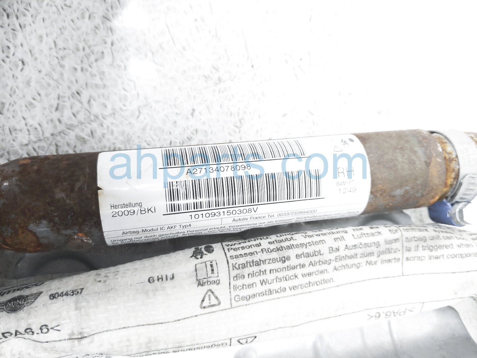 2010 BMW Mini Cooper passenger roof curtain airbag is a used item with a 1 year warranty. This OEM replacement passenger roof curtain airbag is genuine and has part numbers 72-12-7-134-078, and 72127134078. This BMW part sells for $75.