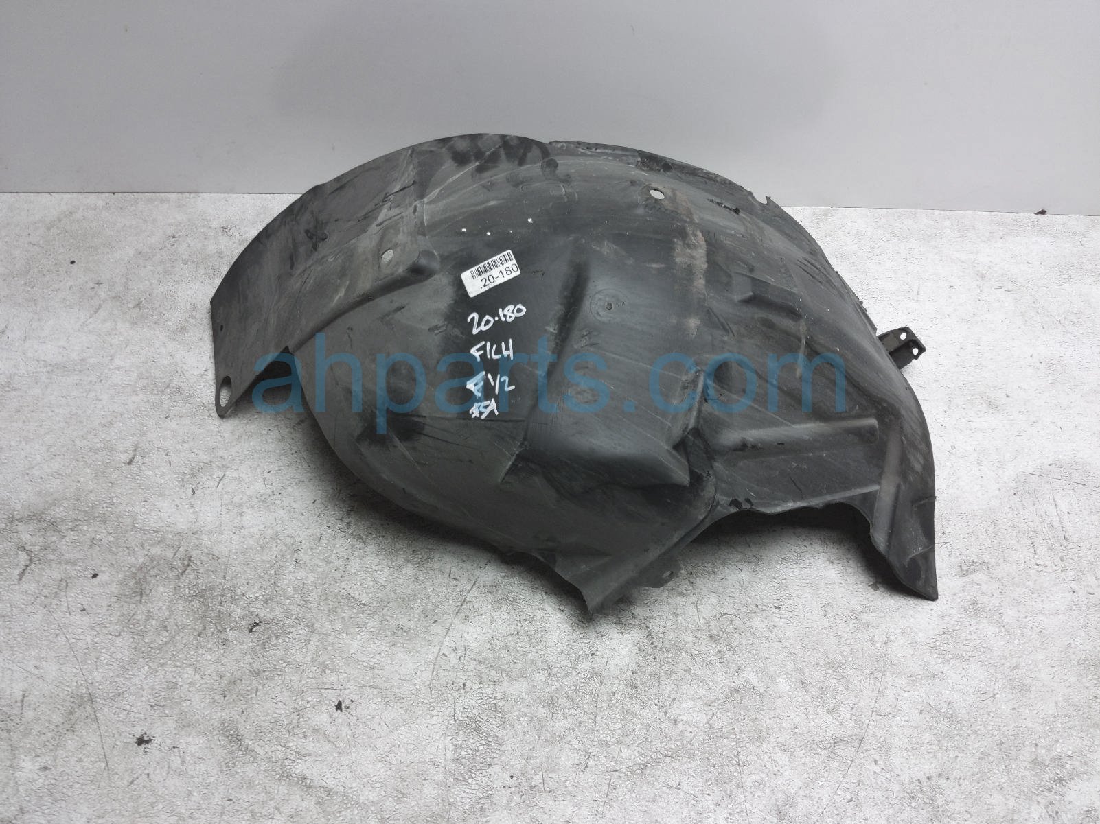2010 Ford Mustang front driver front half inner fender liner is a used item with a 1 year warranty. This OEM replacement front driver front half inner fender liner is genuine and has part numbers AR3Z-16103-A, and AR3Z16103A. This Ford part sells for $20. This item has the following note: 'Has a broken tab.'
