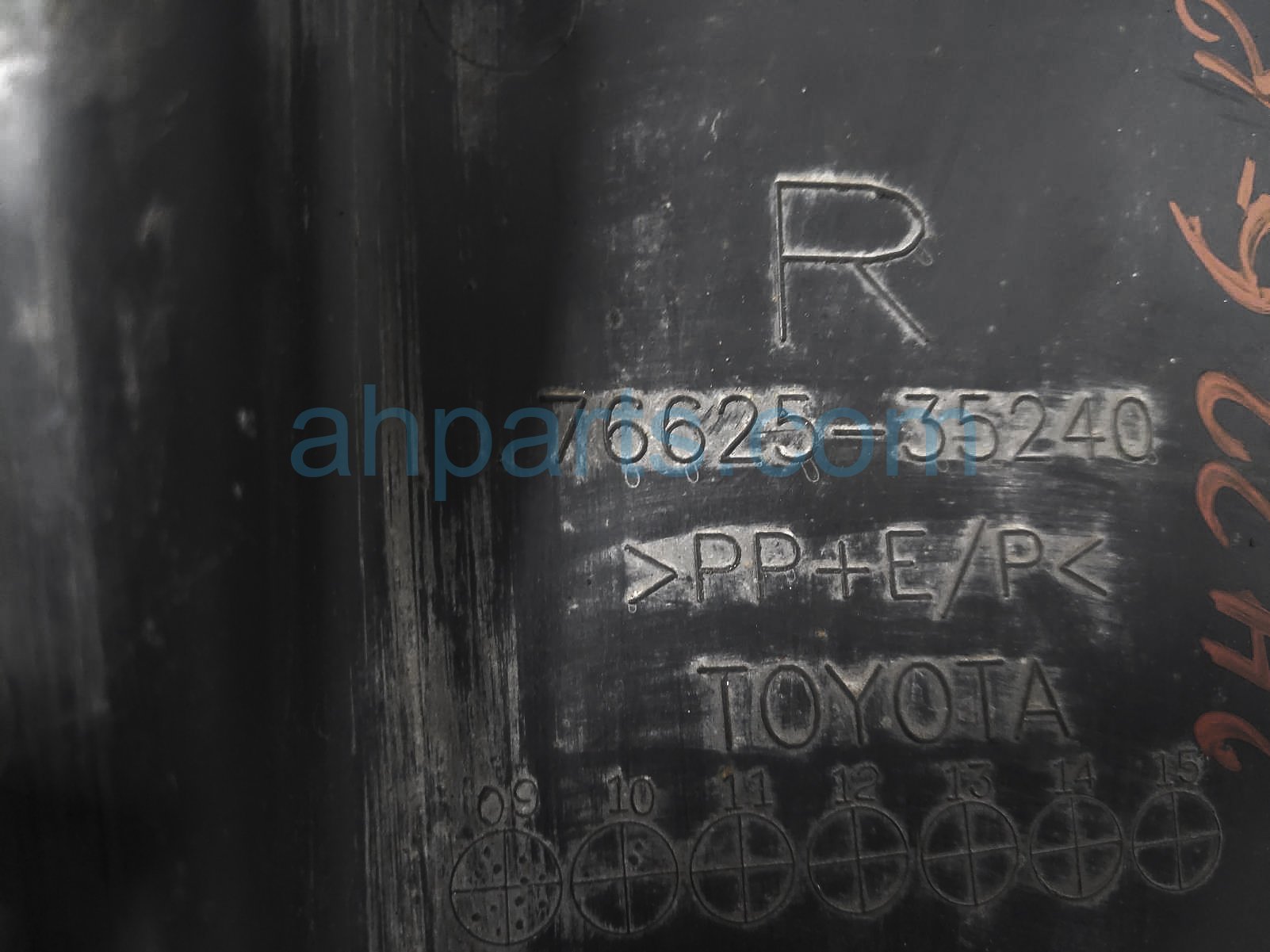 2010 Toyota 4 Runner rear passenger mud flap splash guard is a used item with a 1 year warranty. This OEM replacement rear passenger mud flap splash guard is genuine and has part numbers 53723-35040, 5372335040, 76625-35240, and 7662535240. This Toyota part sells for $45.