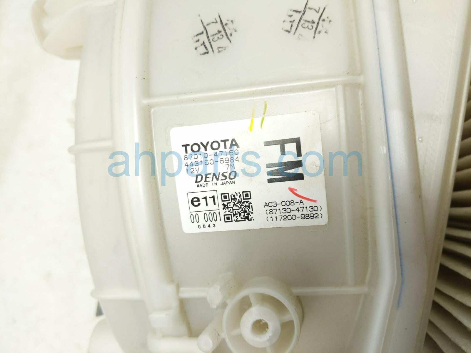 2010 Toyota Prius air a/c blower motor w/housing is a used item with a 1 year warranty. This OEM replacement air a/c blower motor w/housing is genuine and has part numbers 87130-47130, and 8713047130. This Toyota part sells for $100.